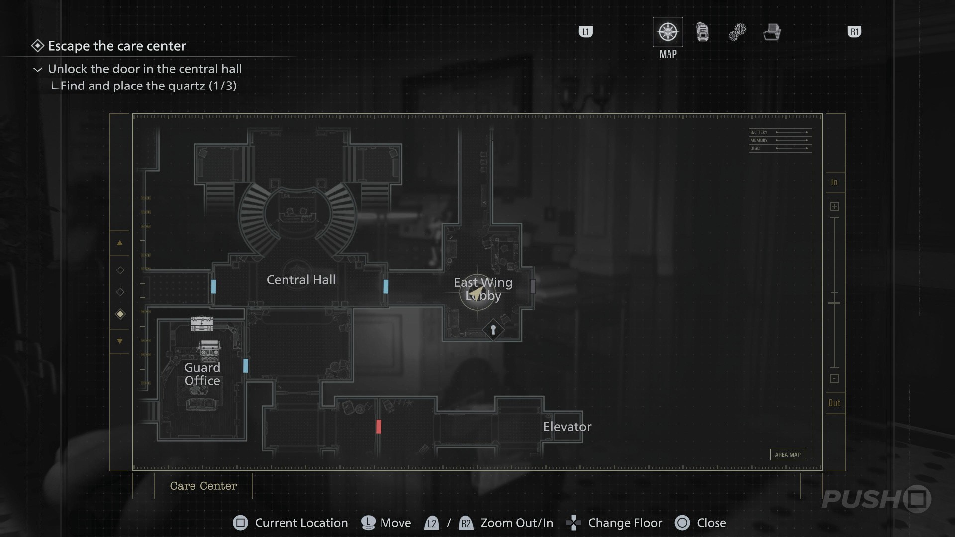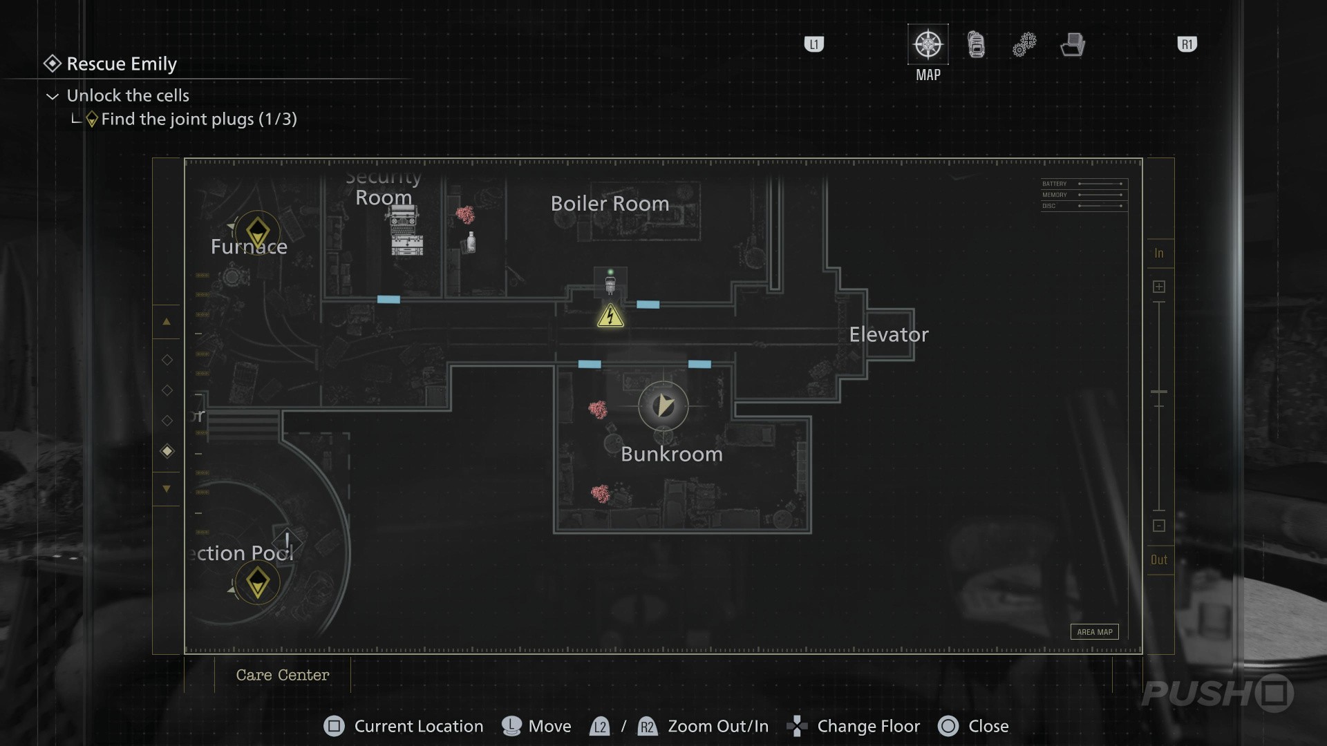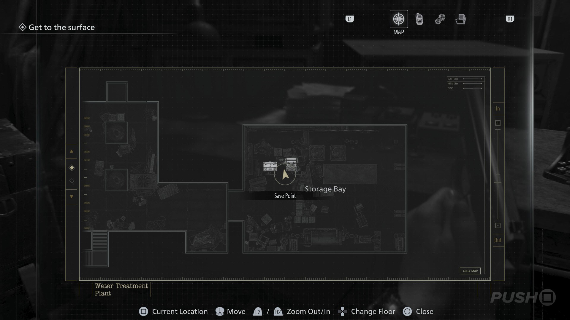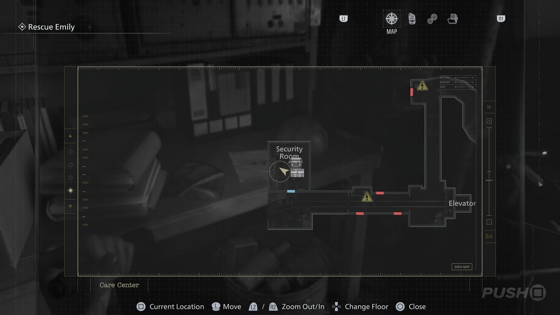 - Follow the path underground until you reach the Security Room, with a Save Point and an Item Box