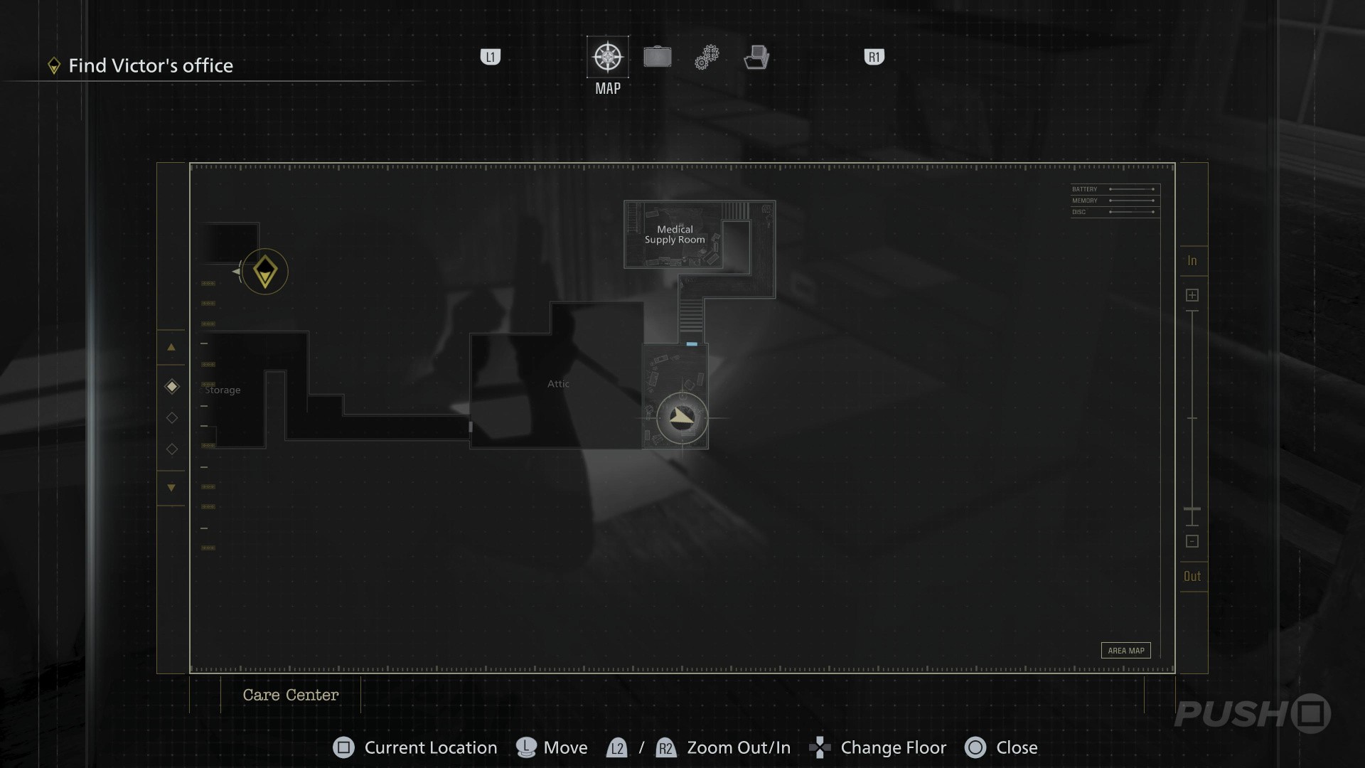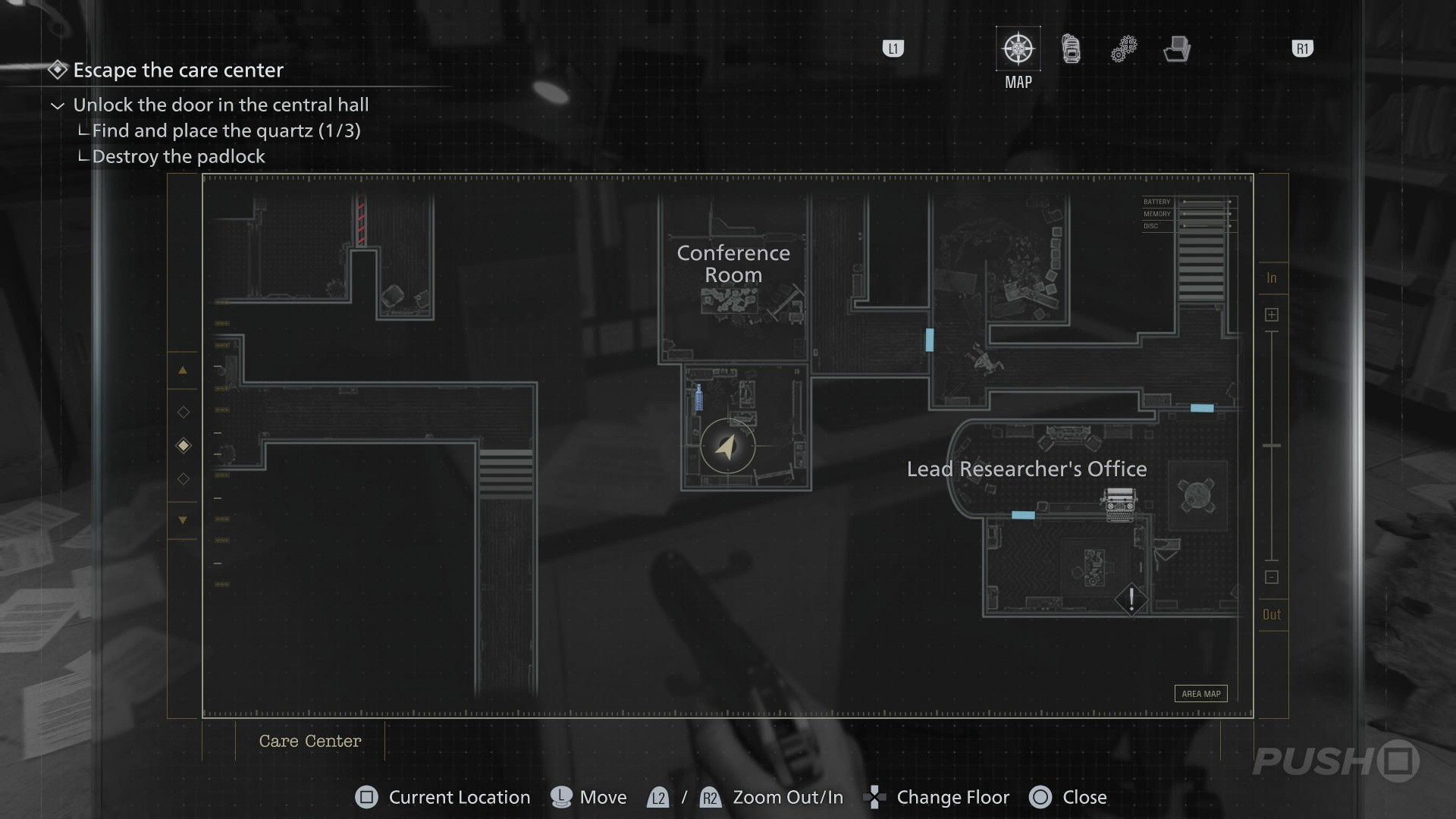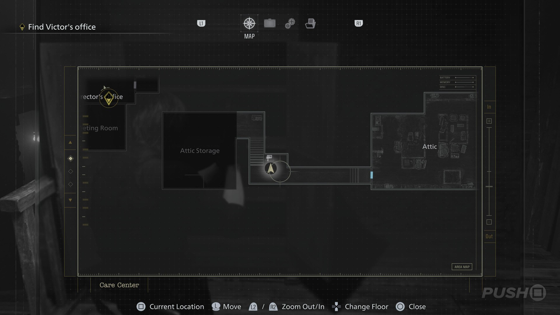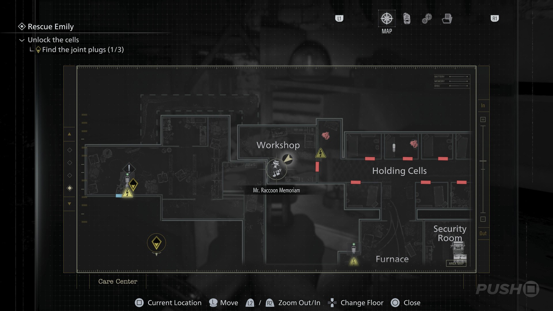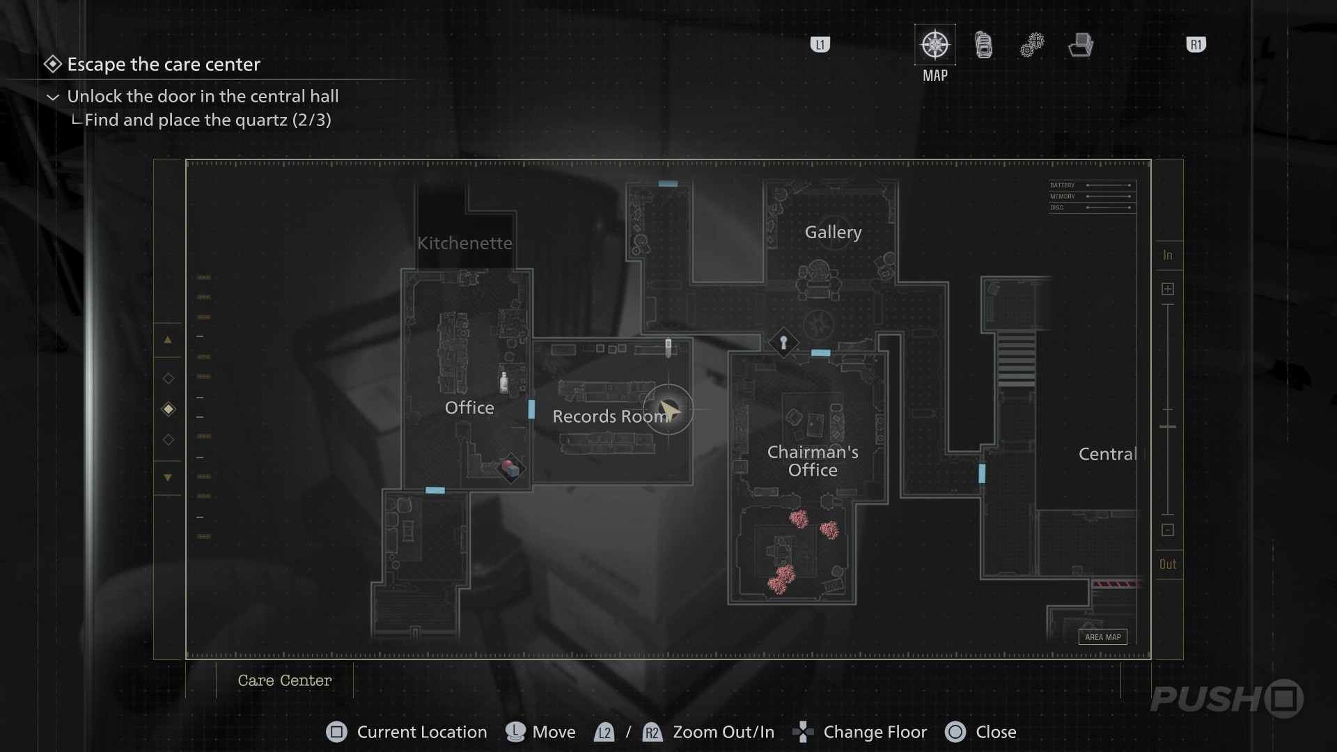 - Follow the path underground until you reach the Security Room, with a Save Point and an Item Box