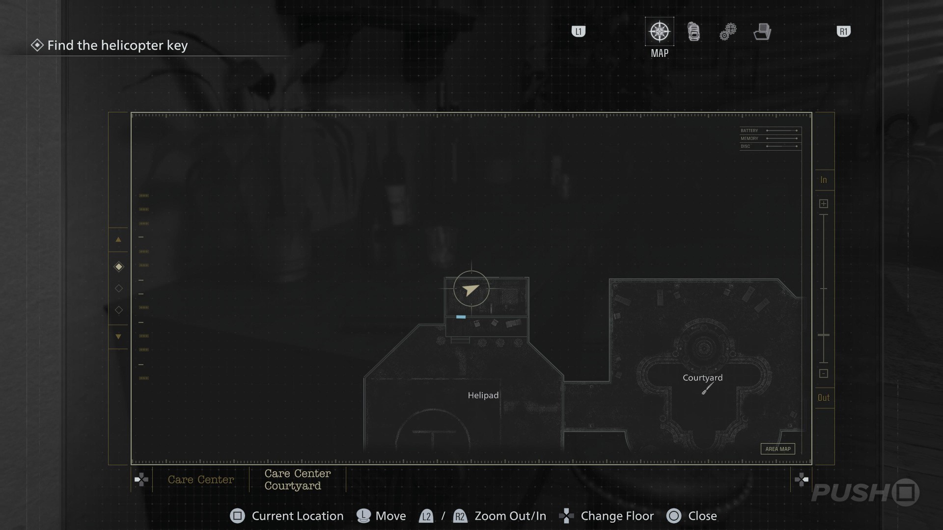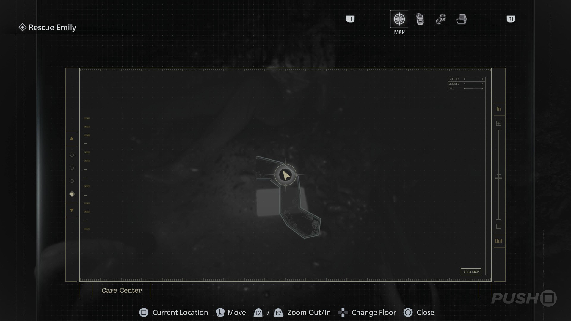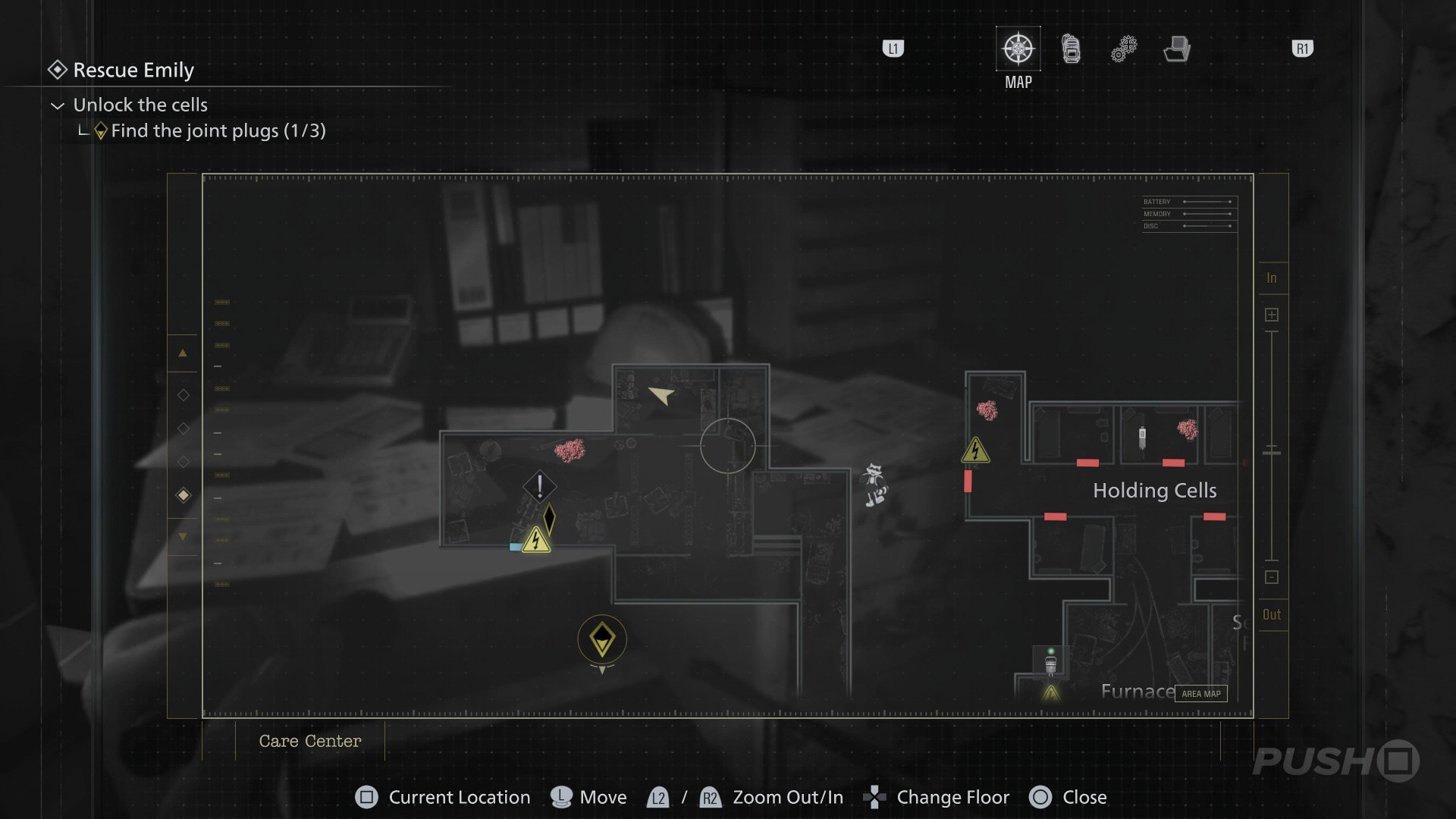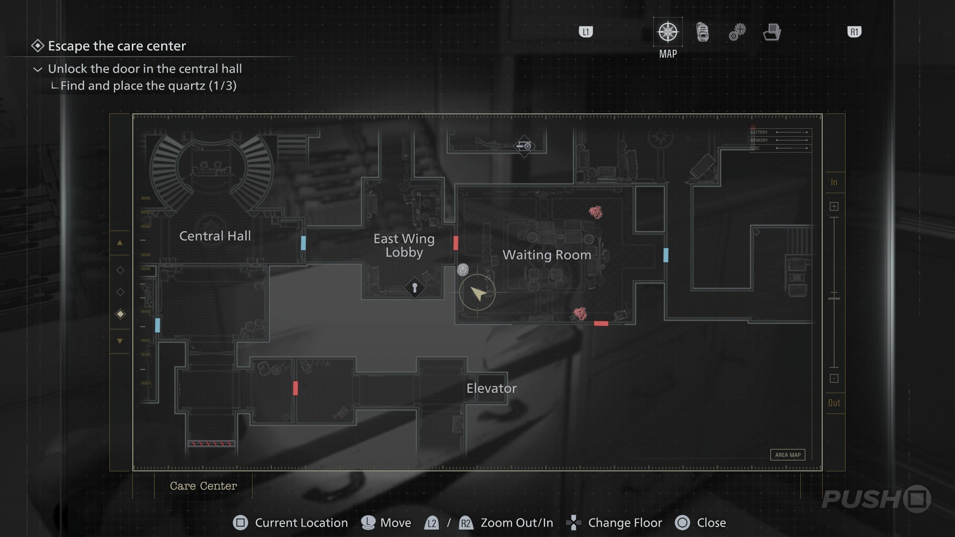- Follow the path underground until you reach the Security Room, with a Save Point and an Item Box