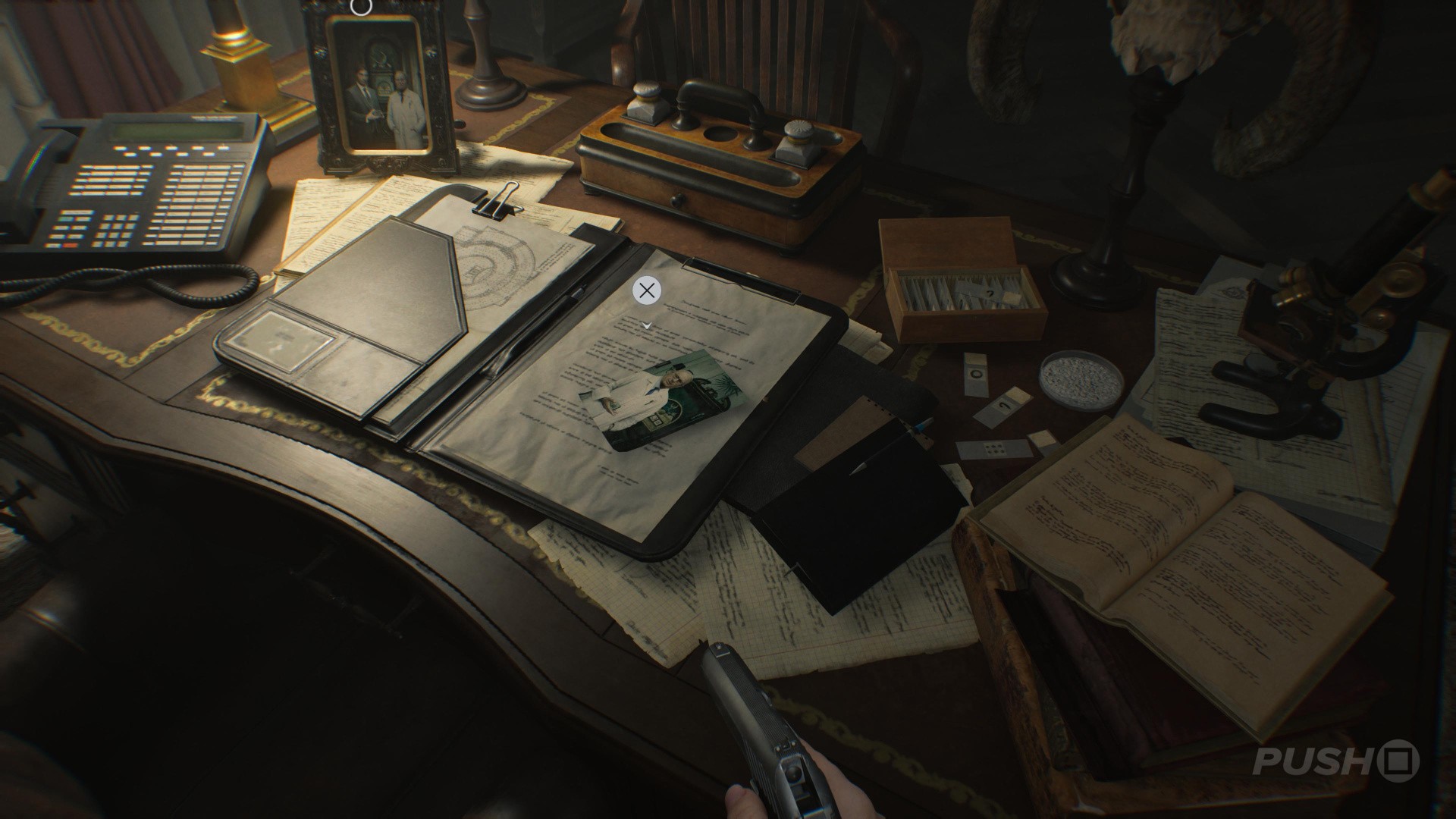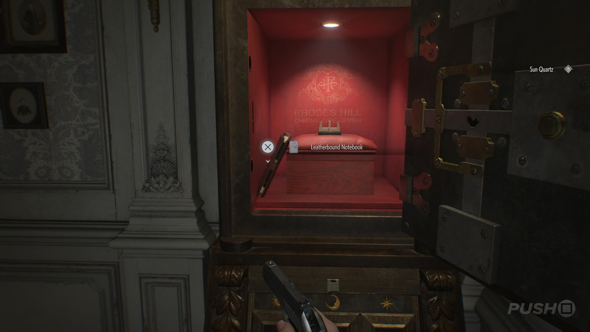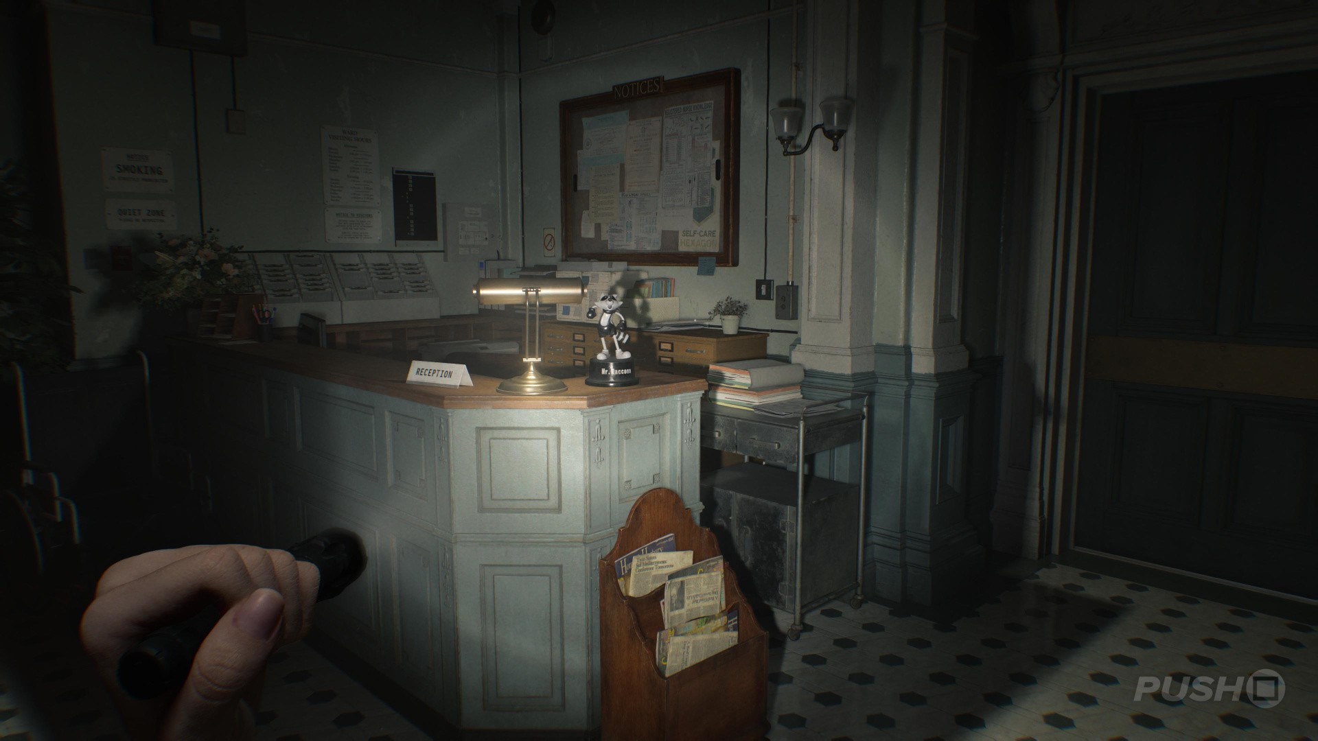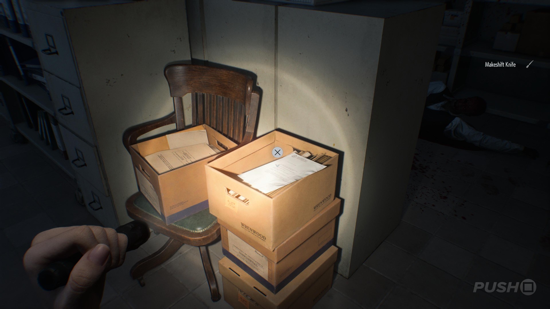 - Before doing so, look left to find the Satiey Suppression Medical Records on a desk