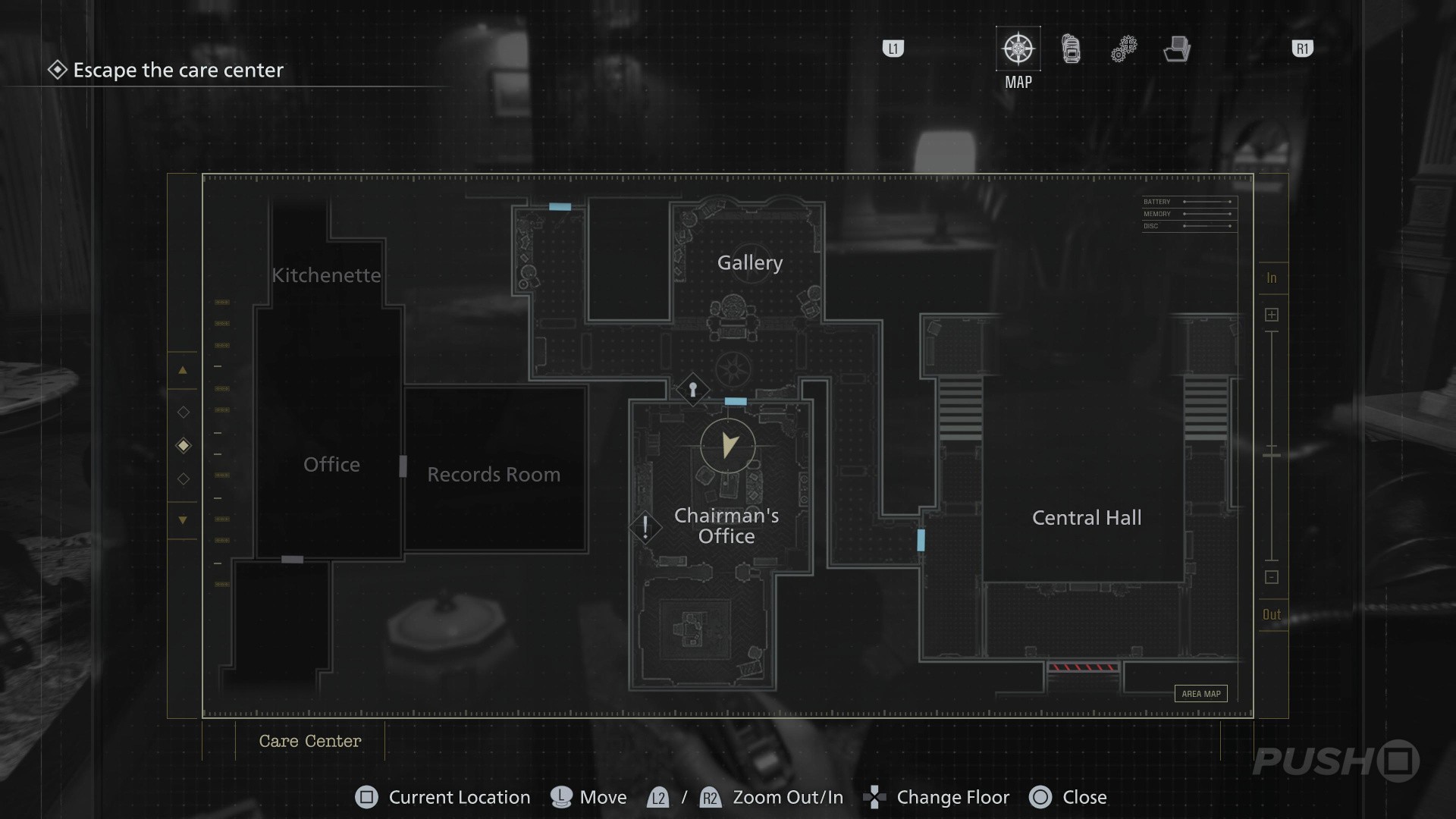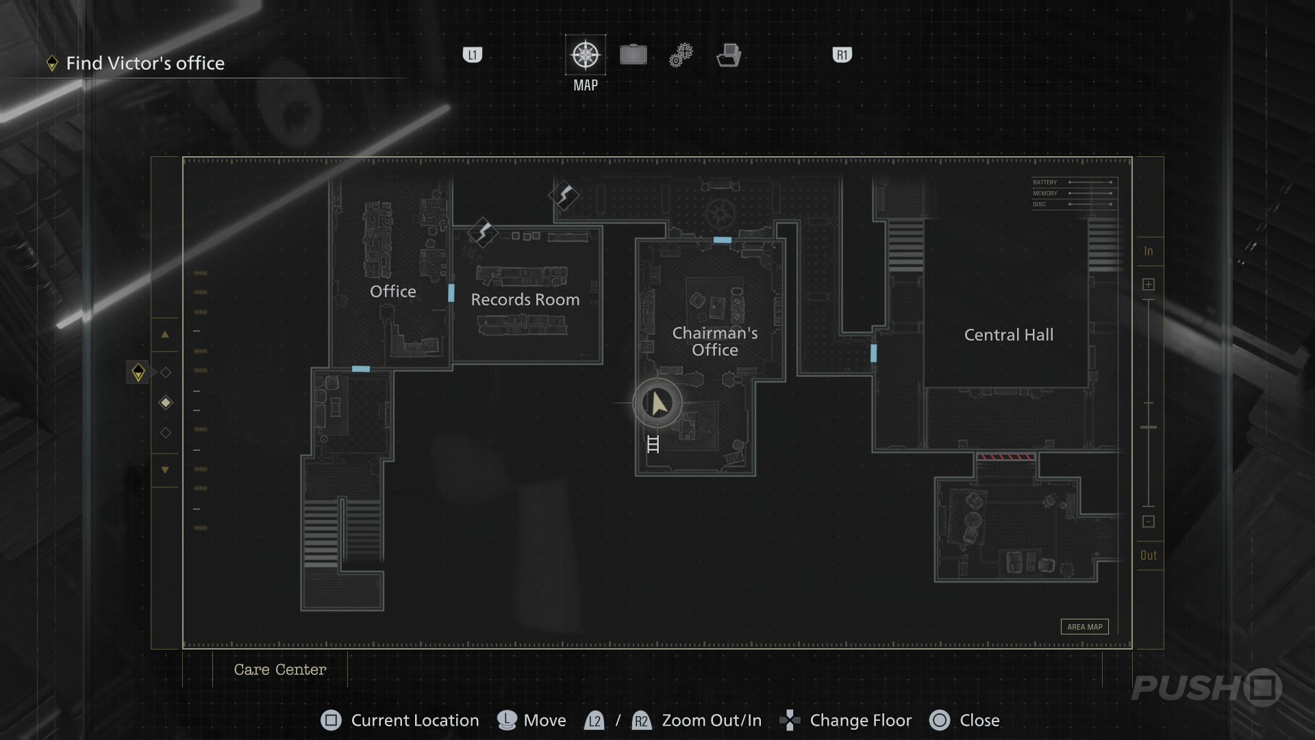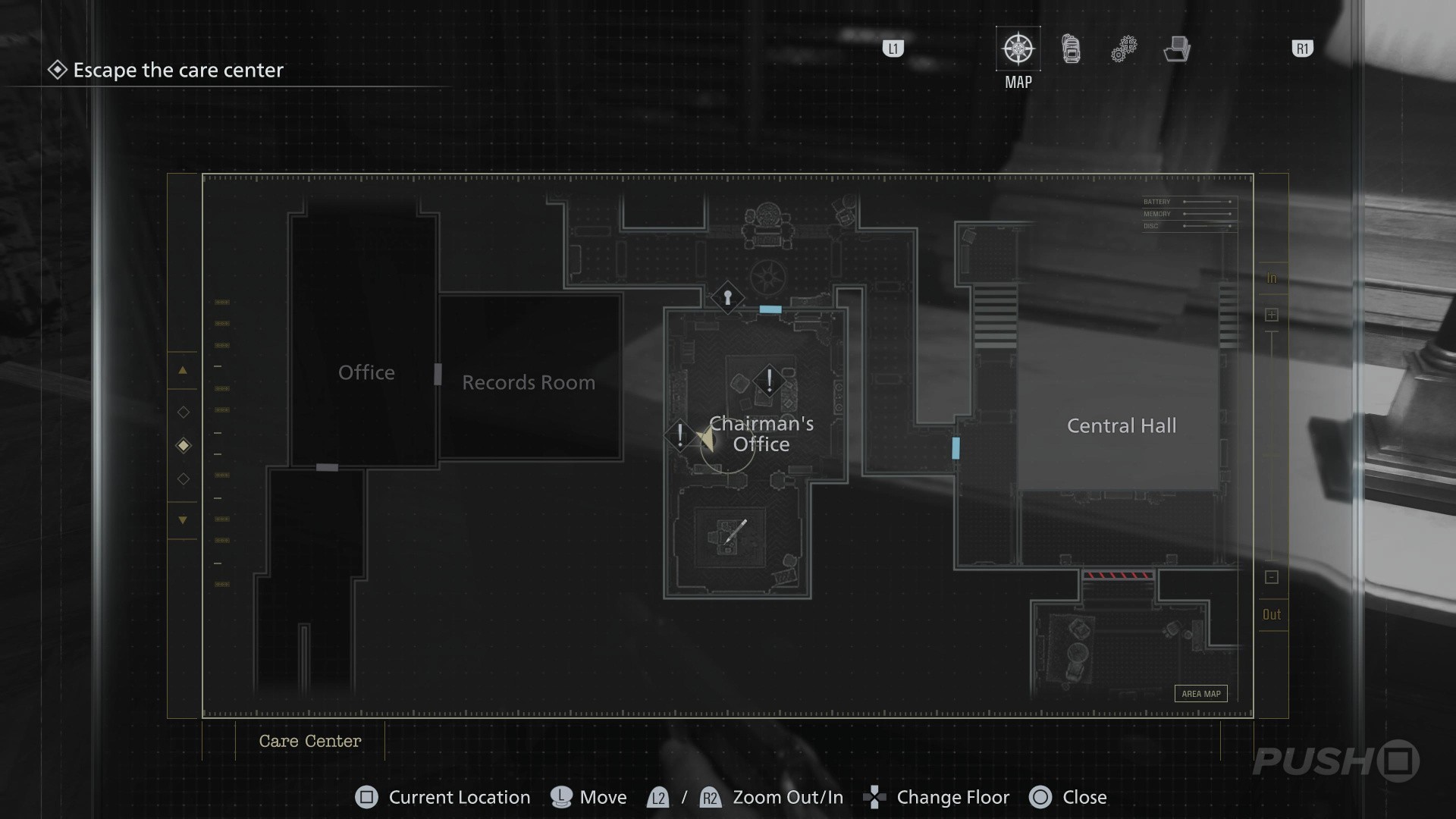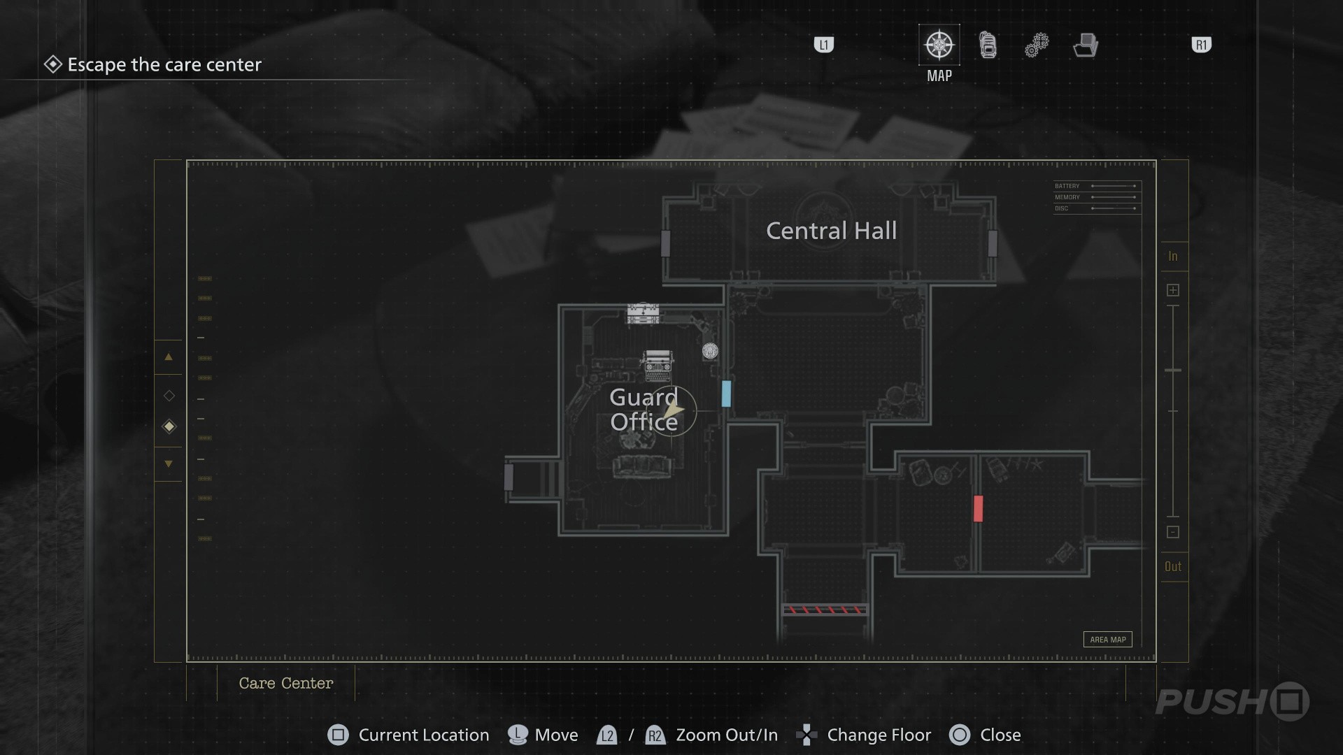 - When you switch back to playing as Grace, enter the Guard Office off the Central Hall