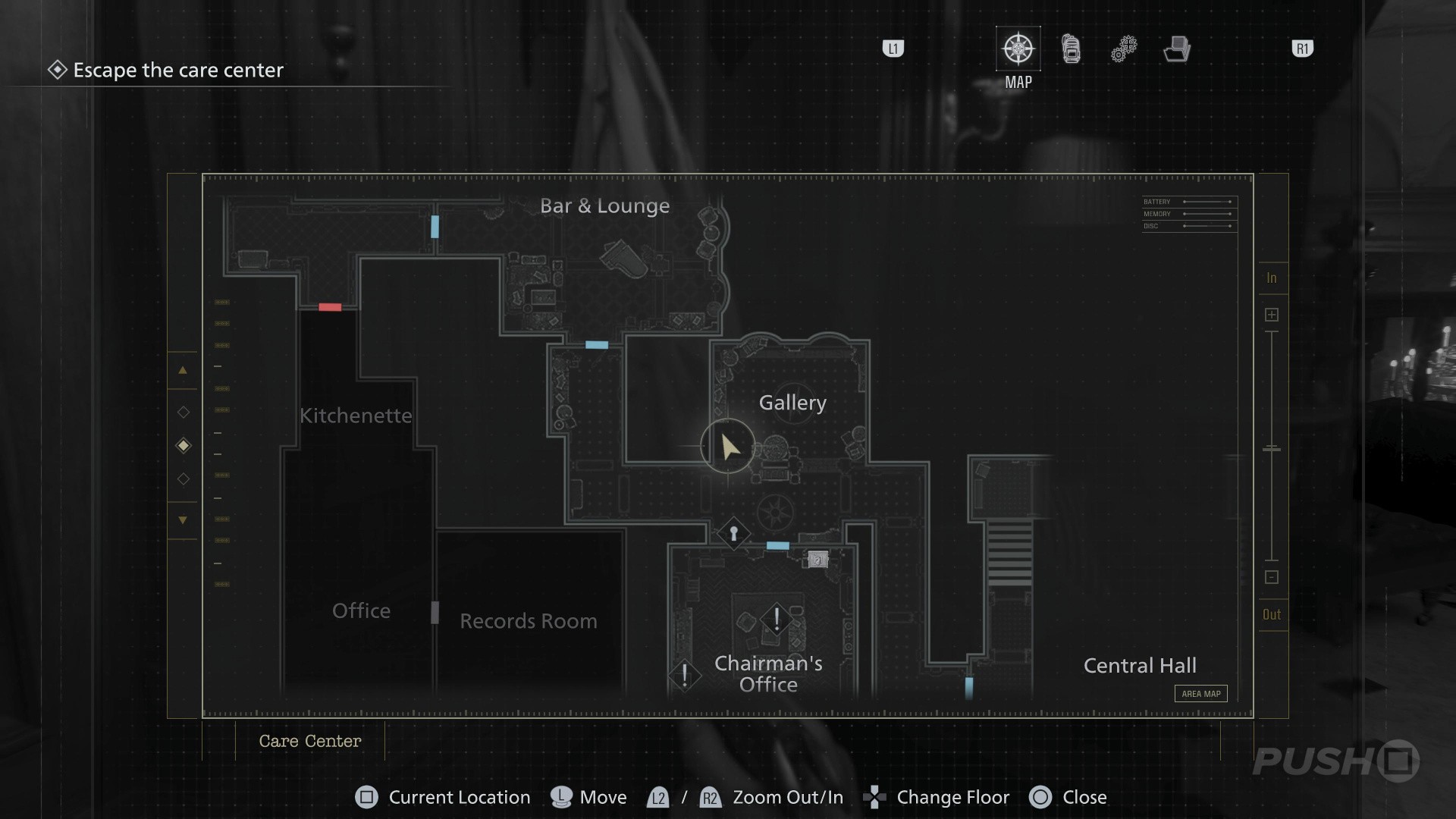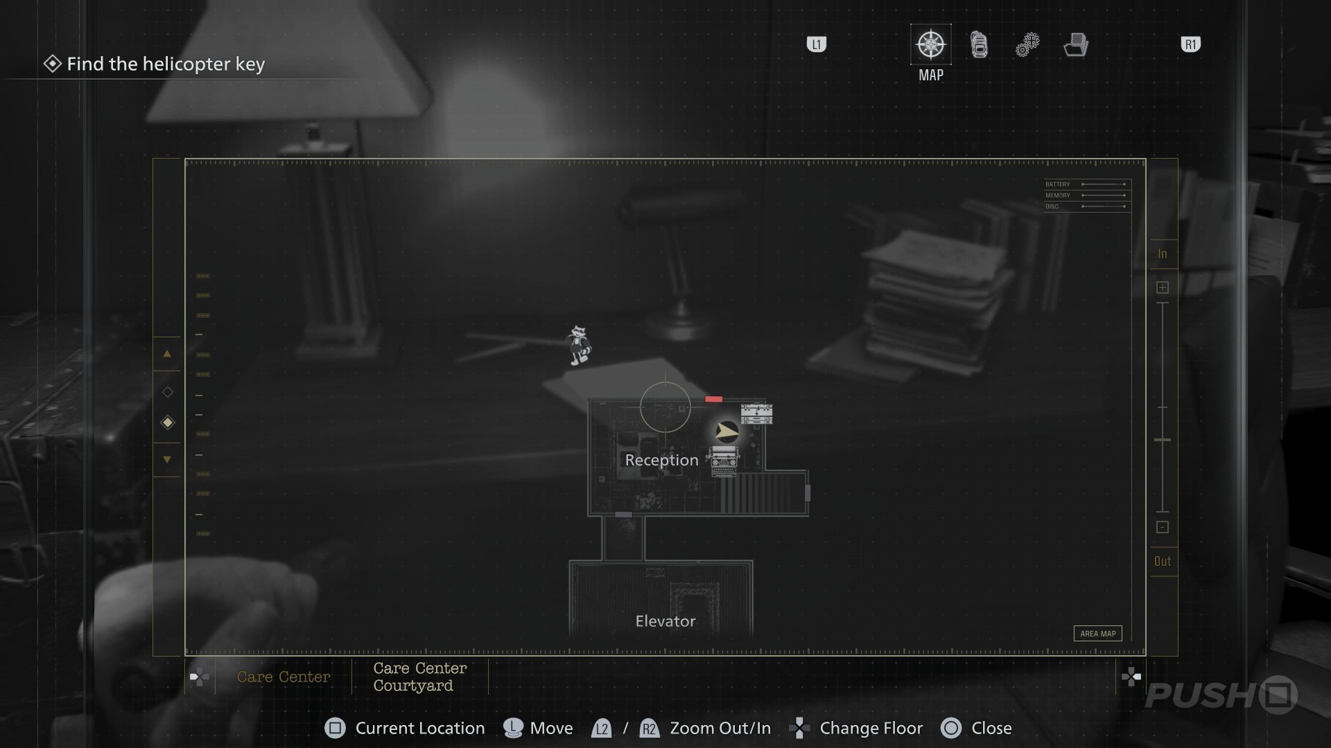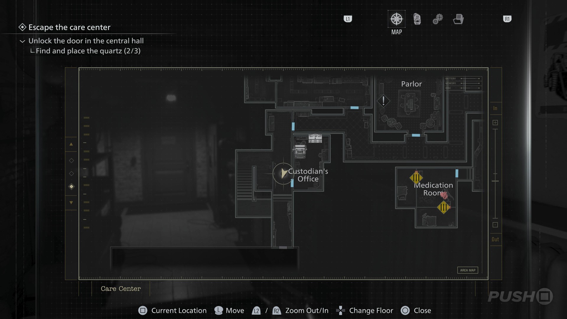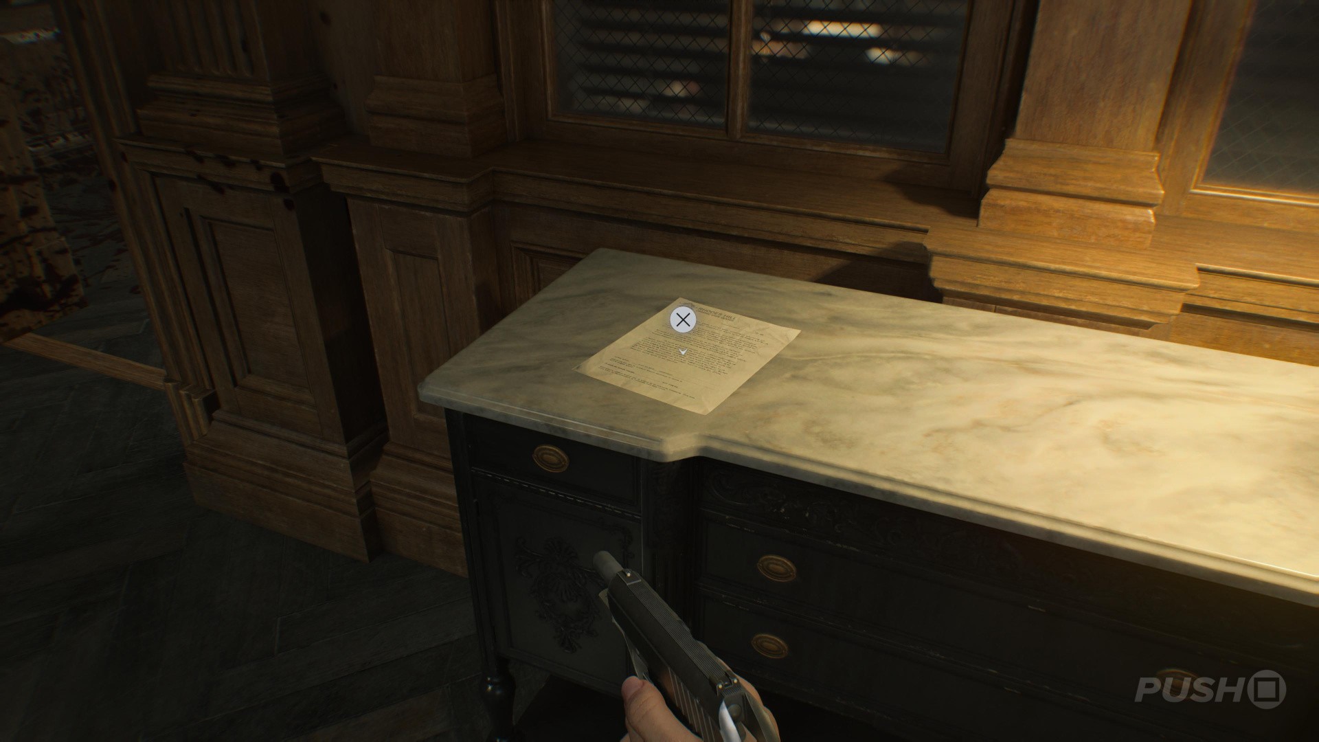 - When you switch back to playing as Grace, enter the Guard Office off the Central Hall