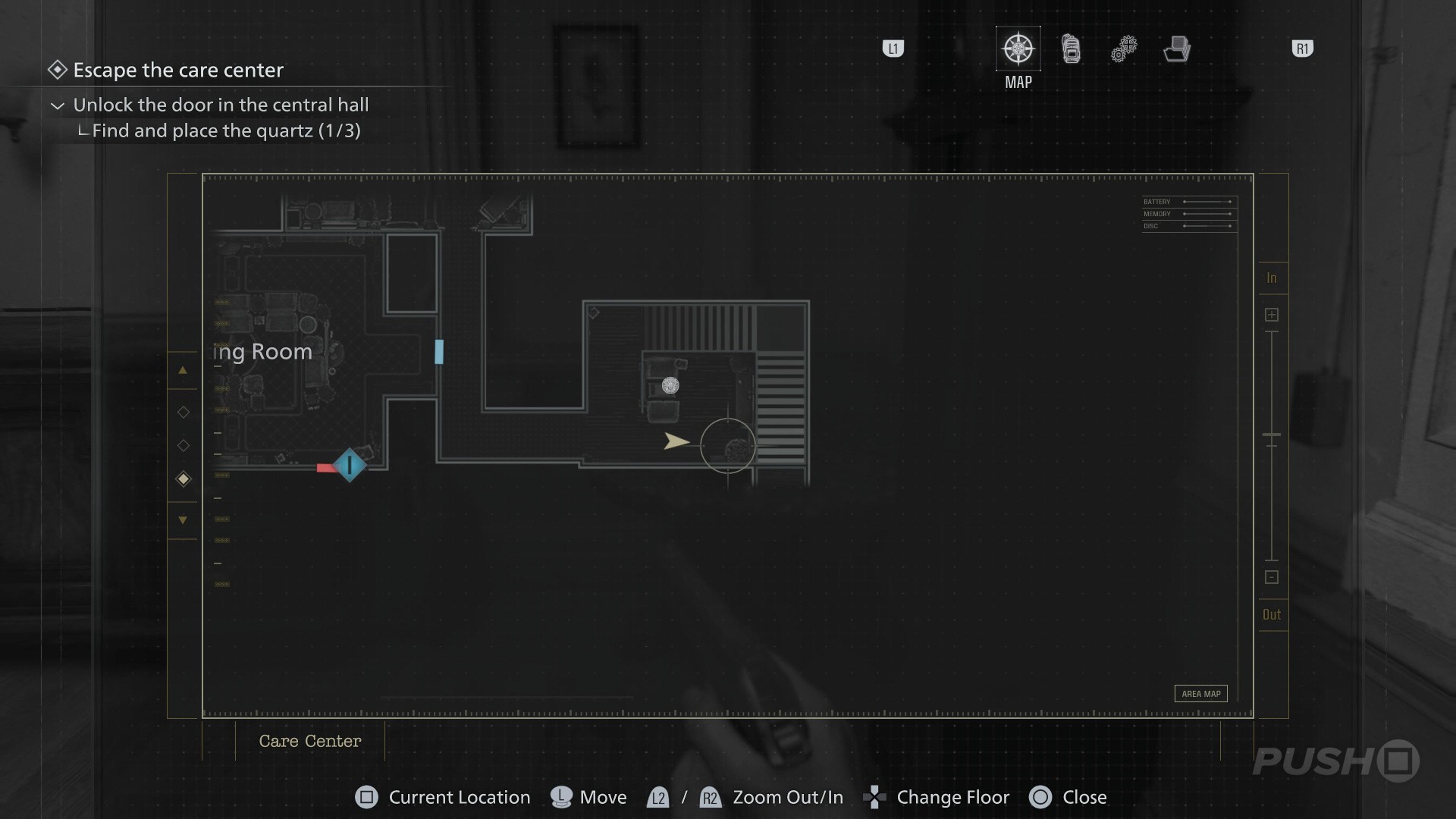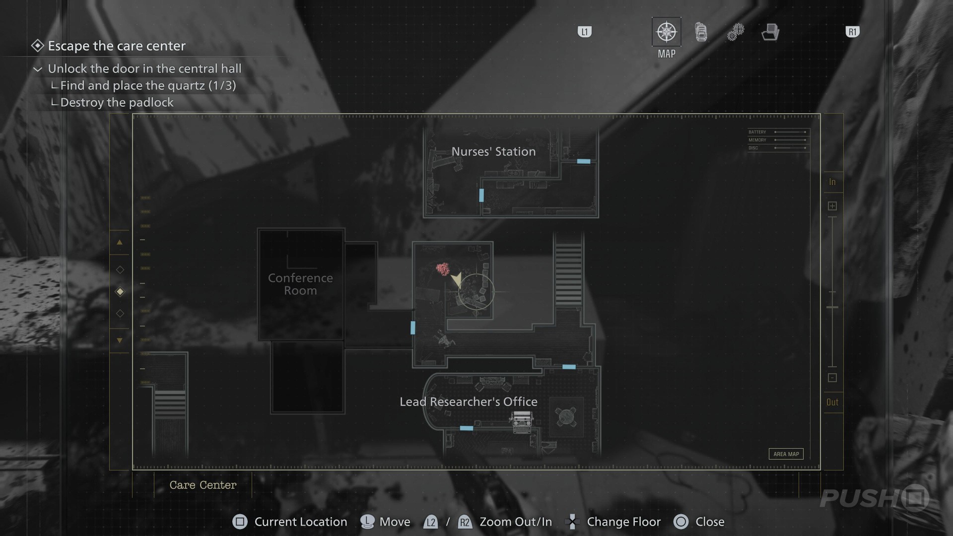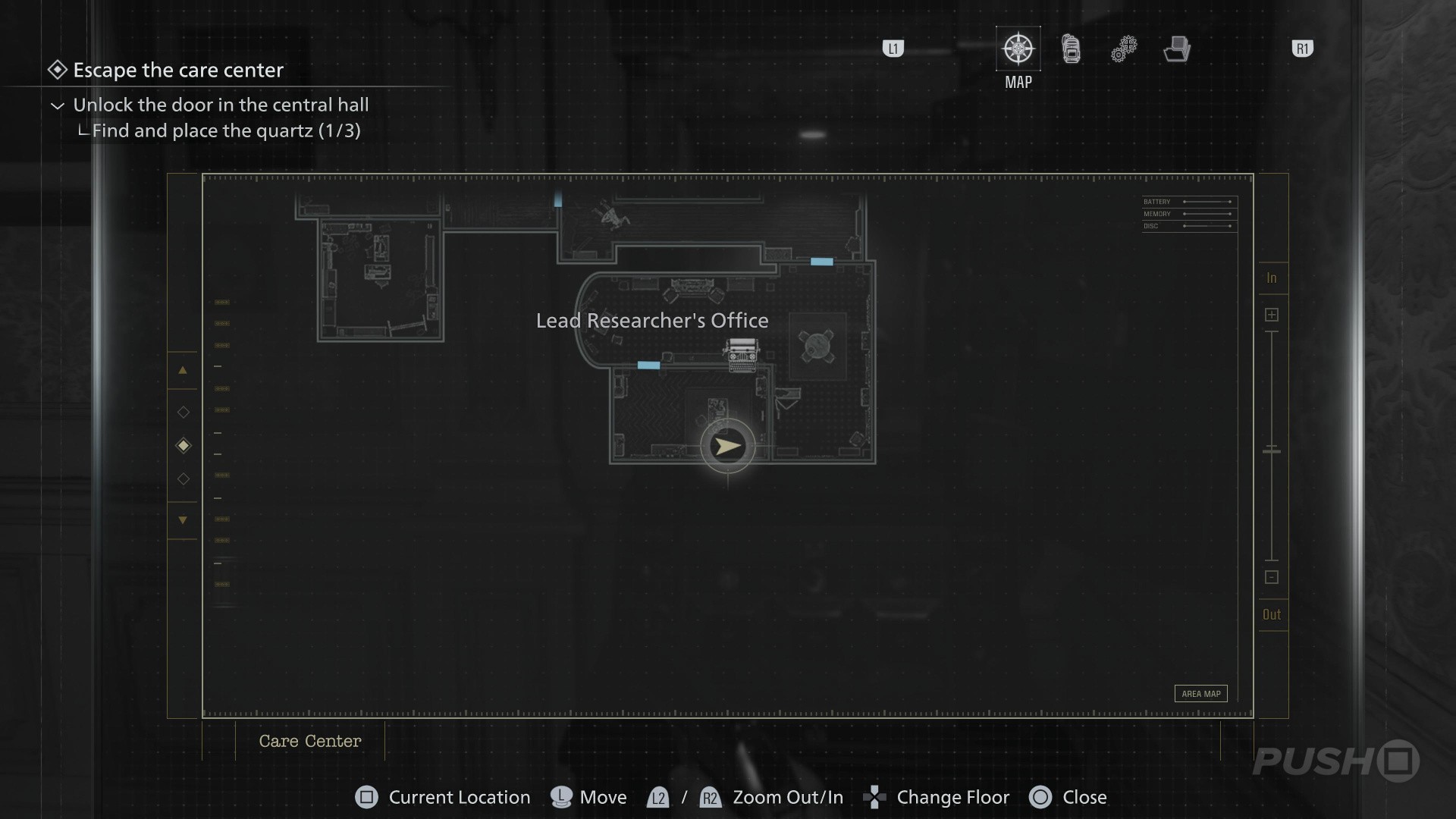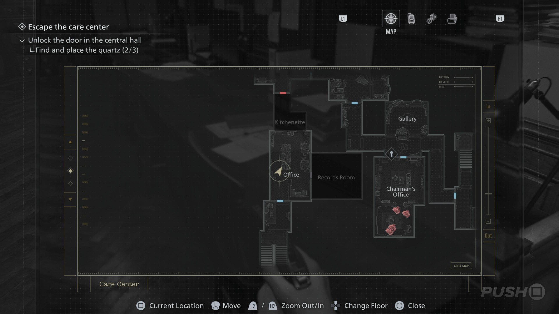 - When you switch back to playing as Grace, enter the Guard Office off the Central Hall