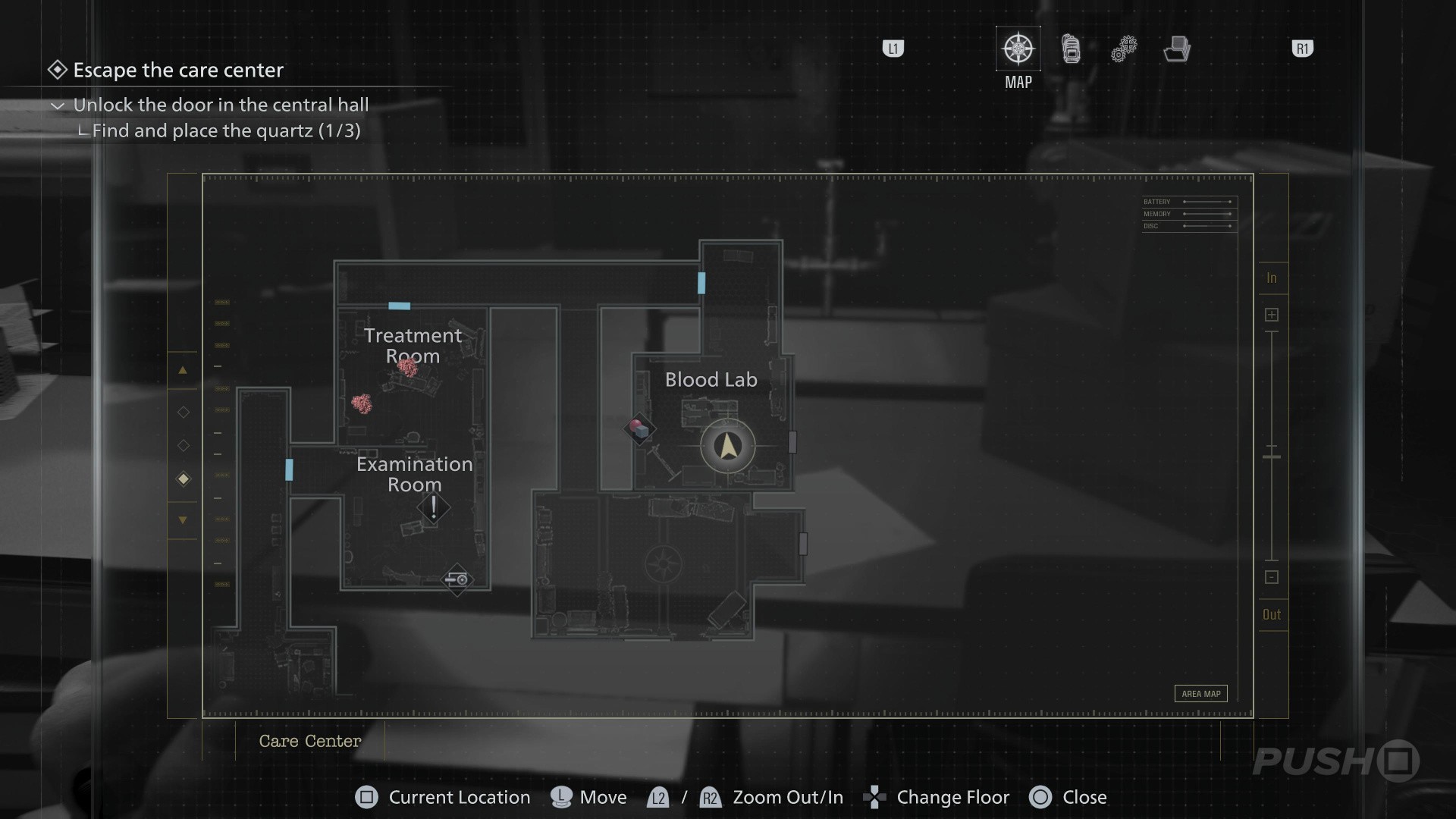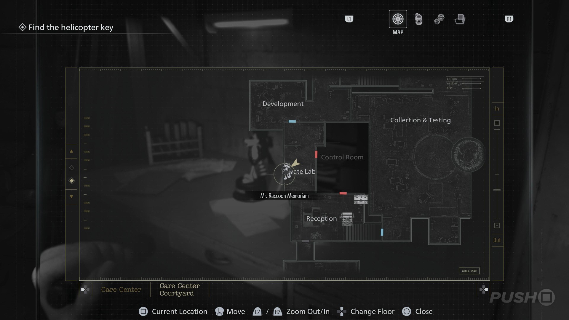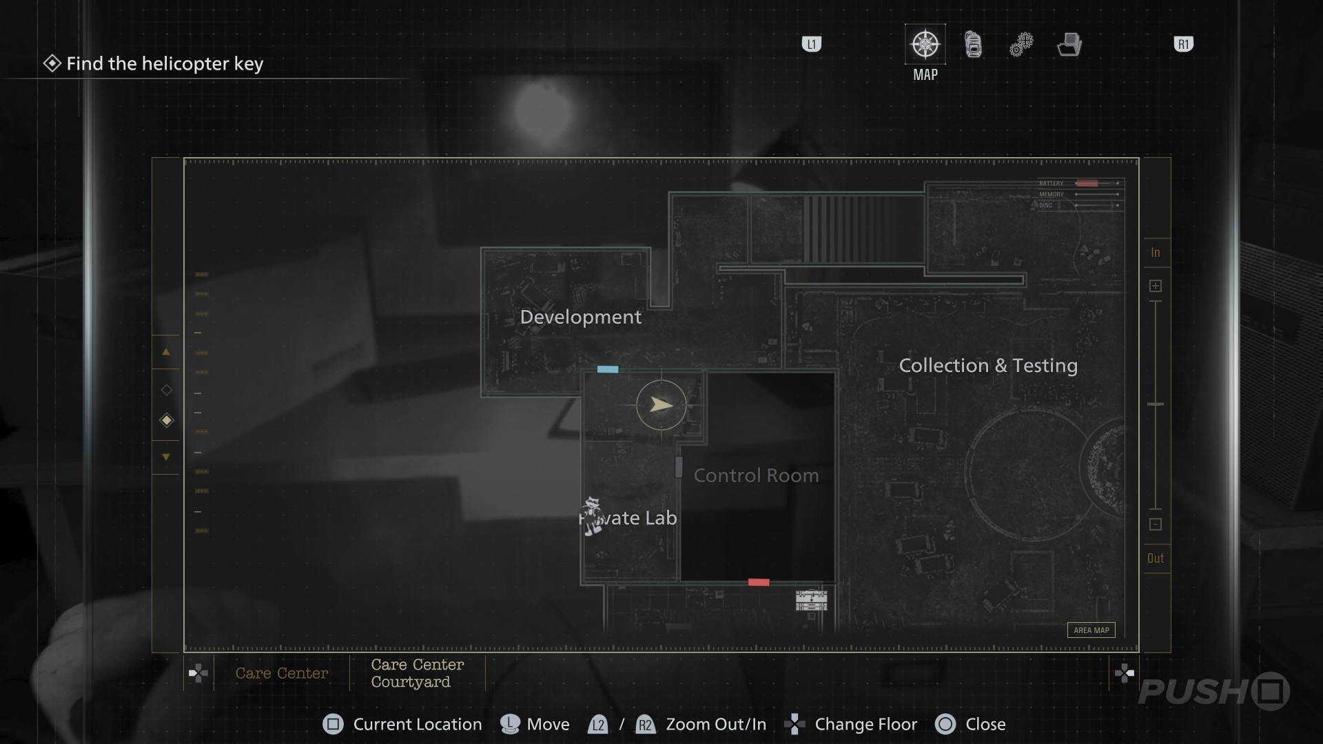- In the large Collection & Testing room, head towards the exit staircase in the north