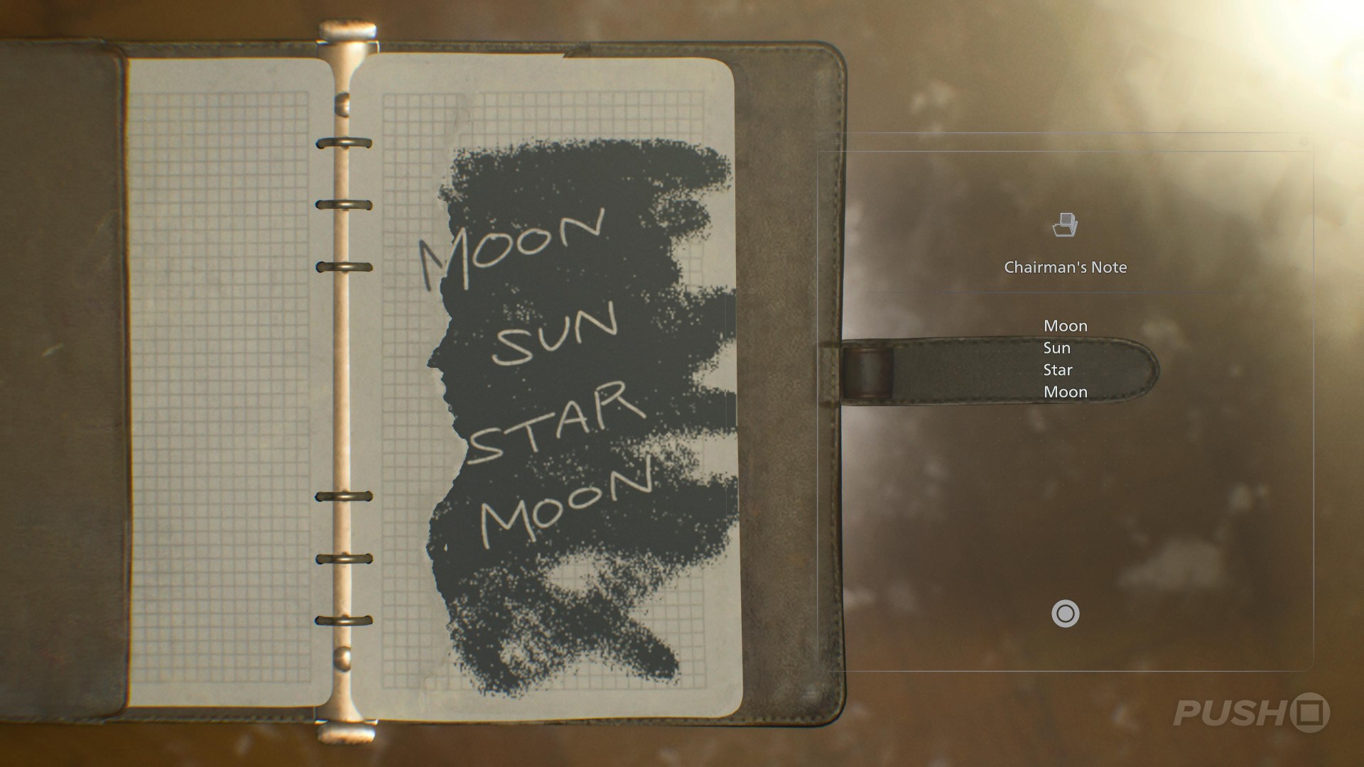 - Fully examine the Leatherbound Notebook to get it