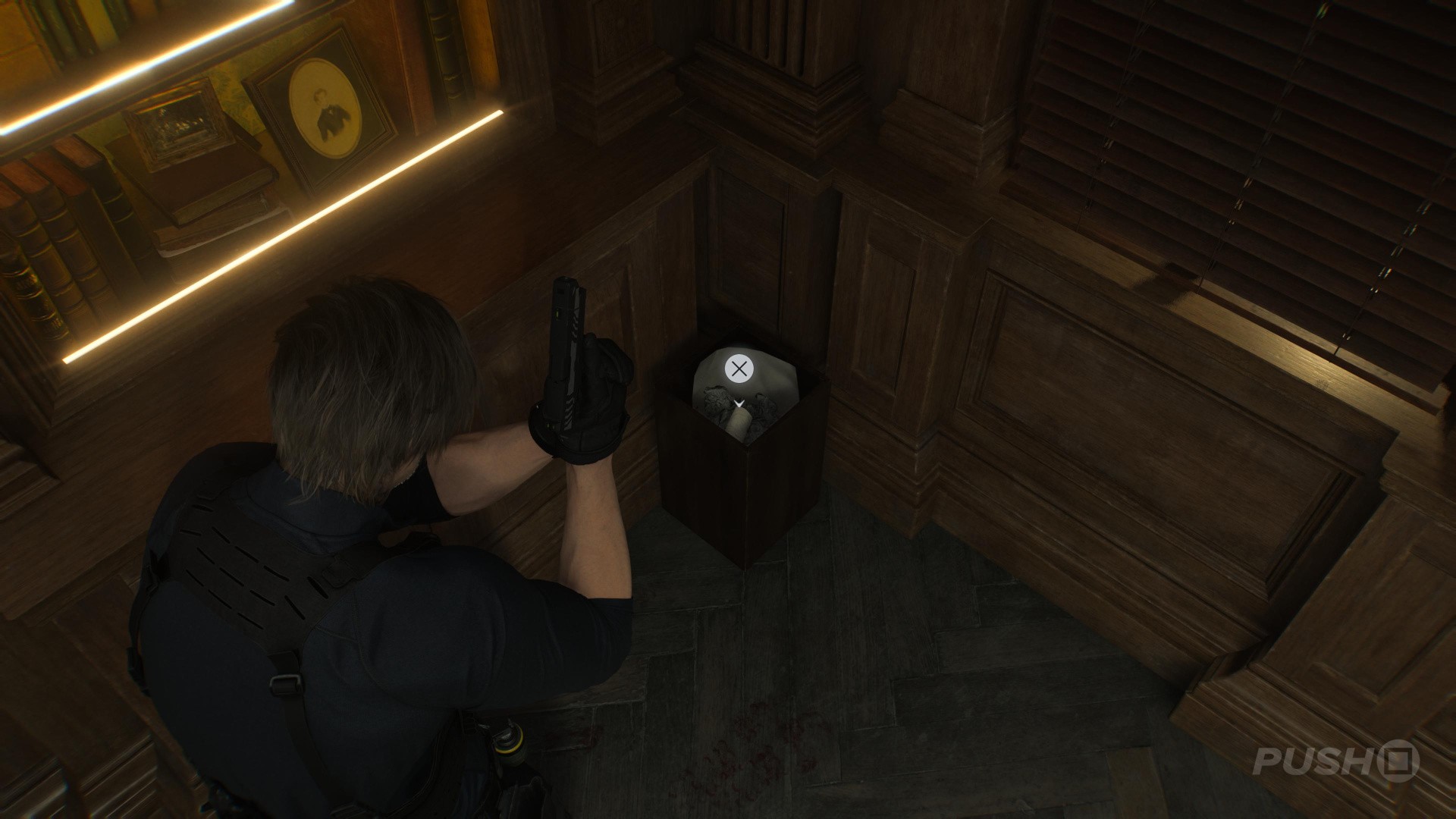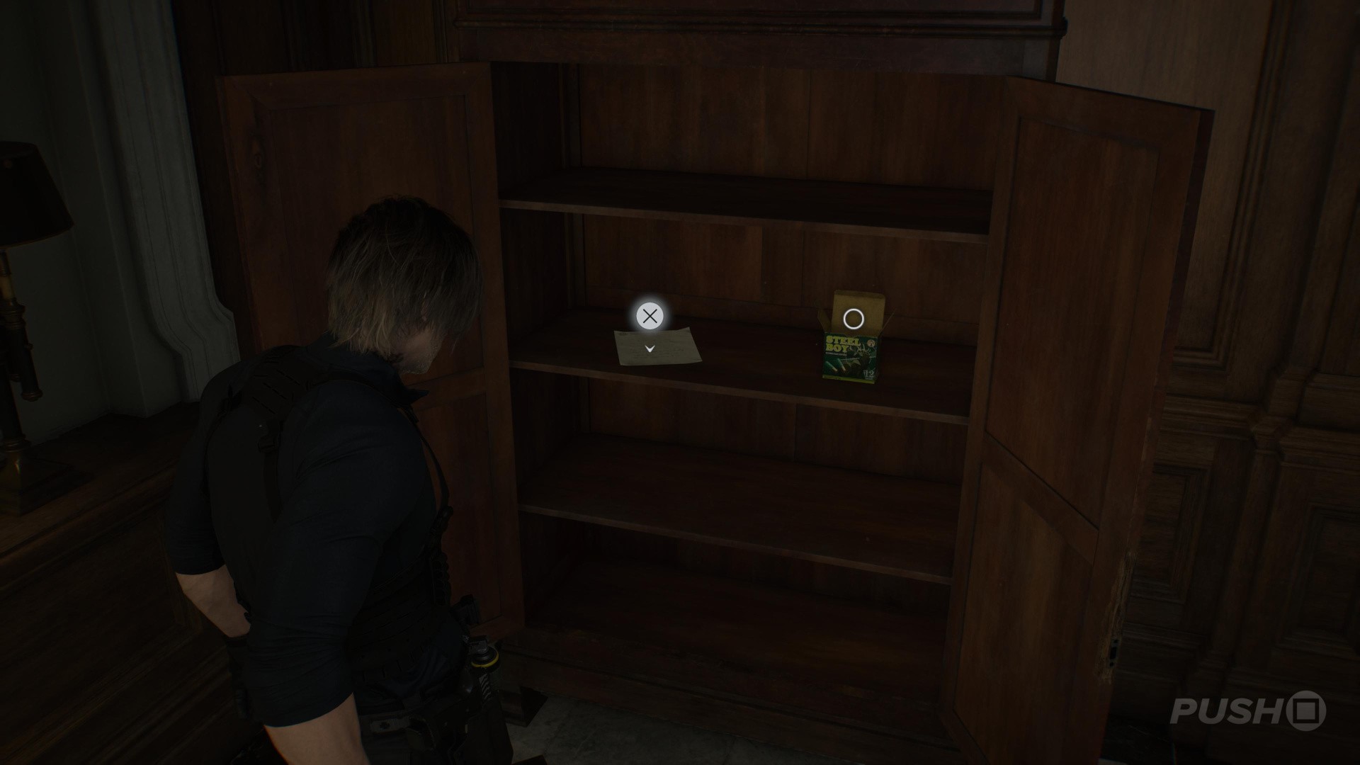 - When you switch back to playing as Leon, follow the only path open to you until you reach a point where you have to move a cabinet out of the way