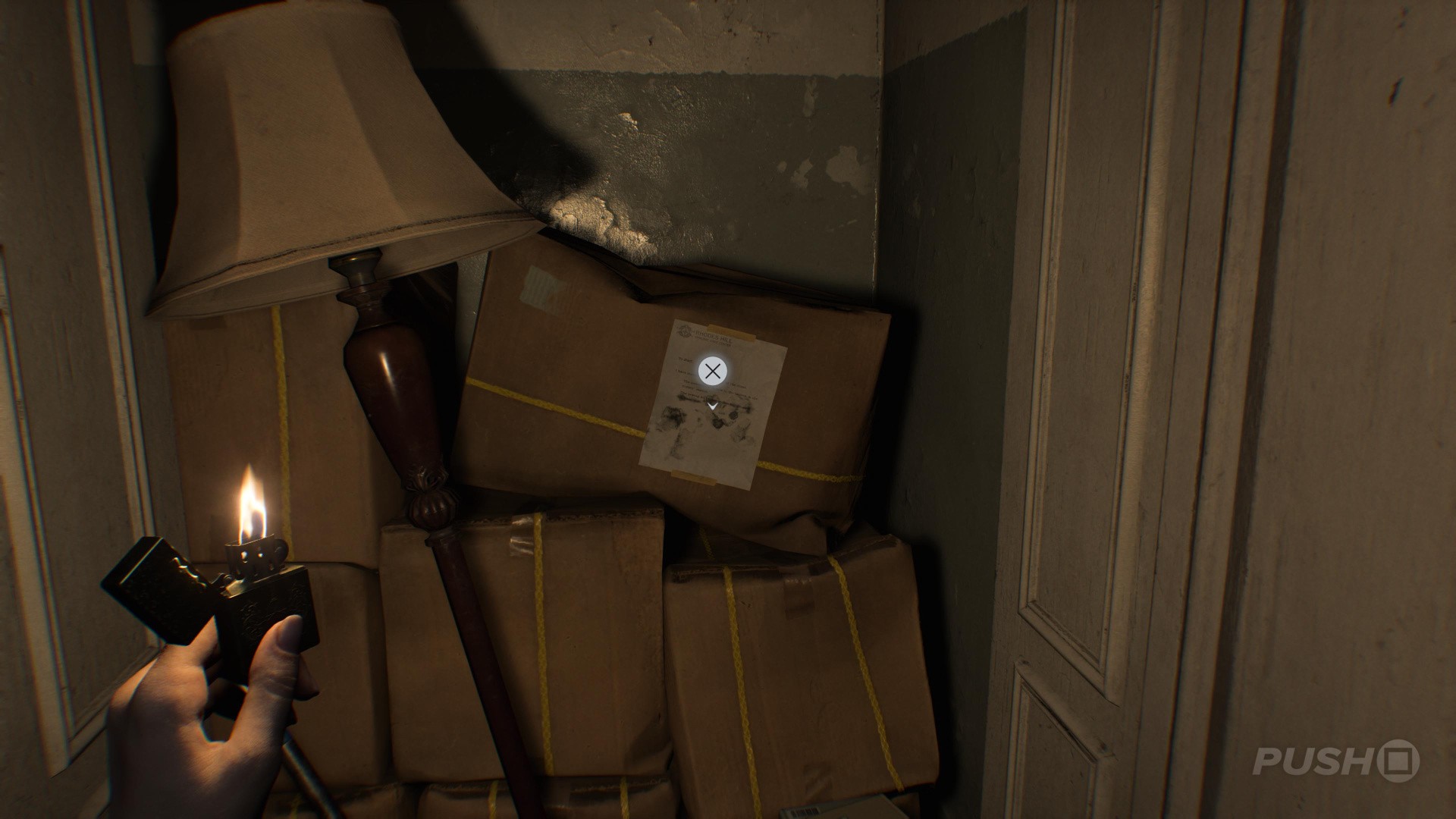 - There'll be a Note on Cardboard Box you can interact with