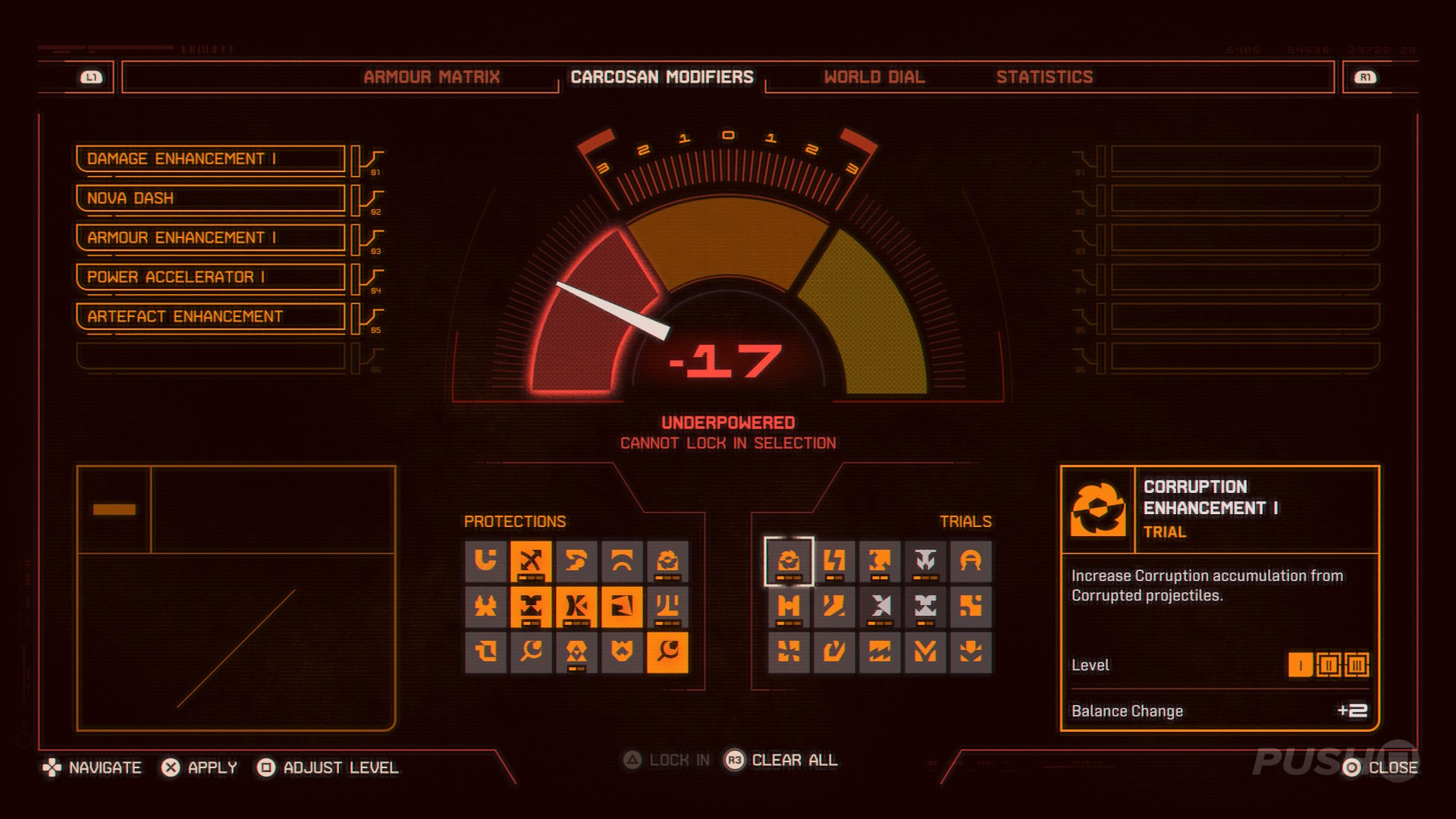 Note: While we recommend experimenting with Carcosan Modifiers to find a loadout that works for you, remember that Protections must be counterbalanced by Trials before they can be applied.