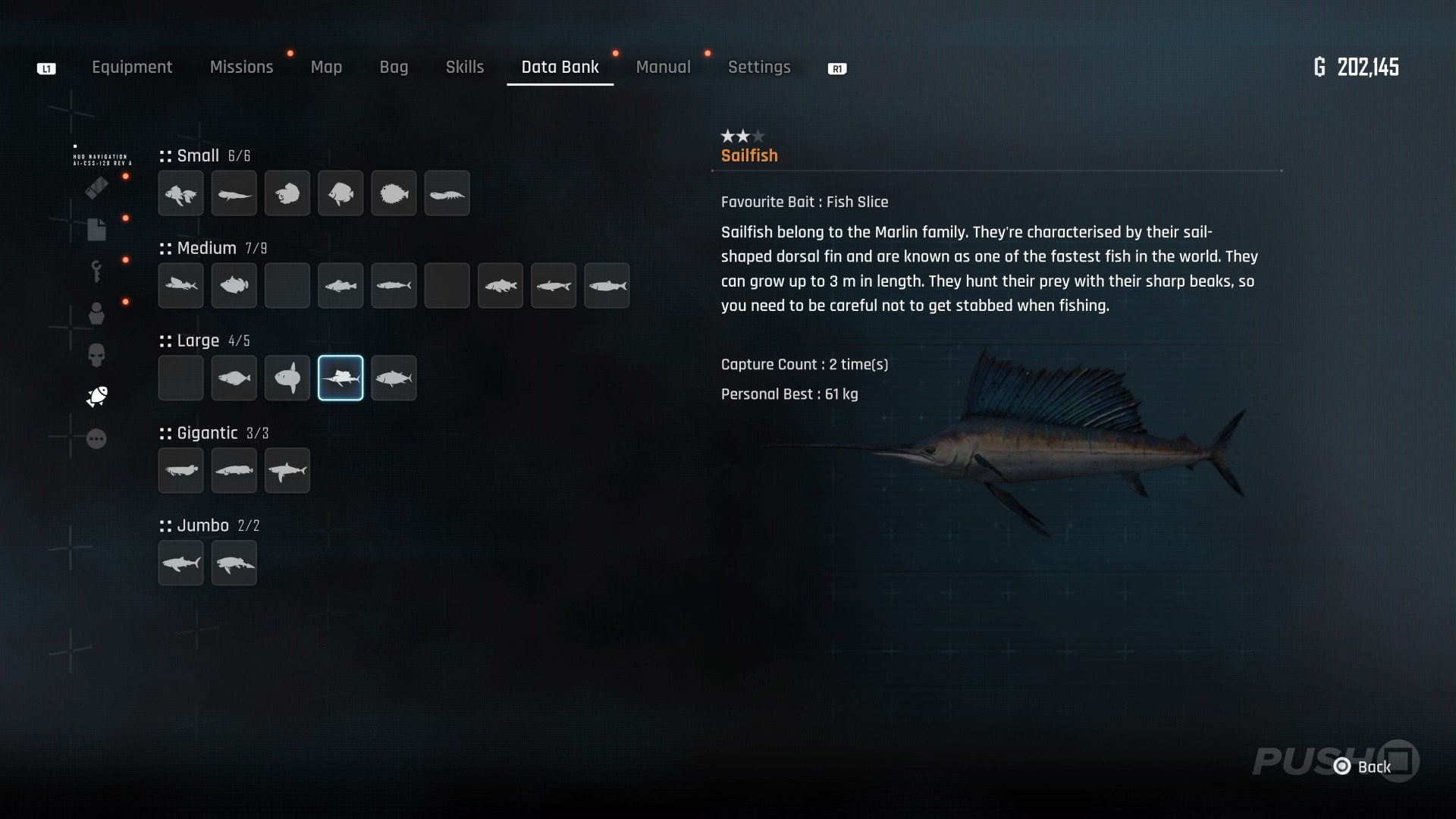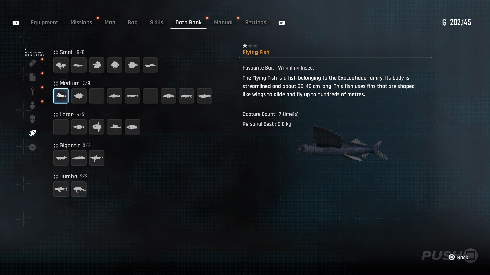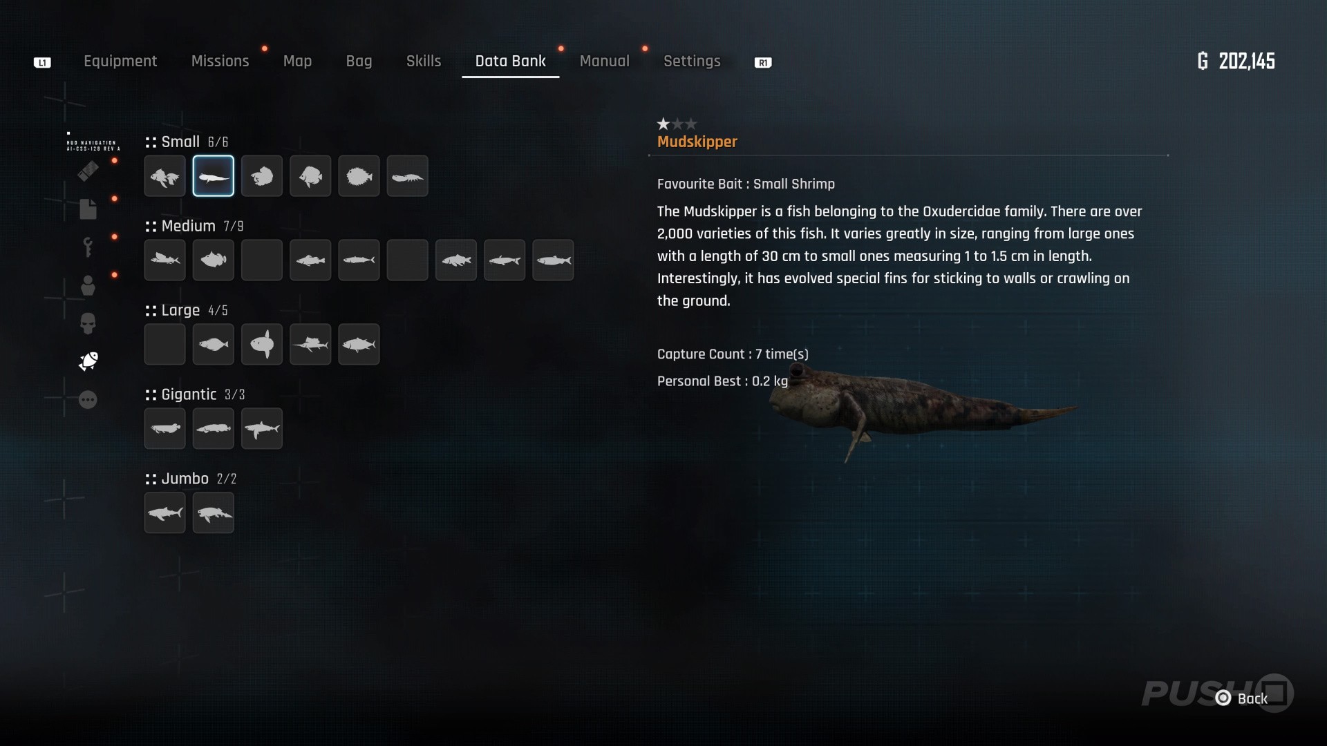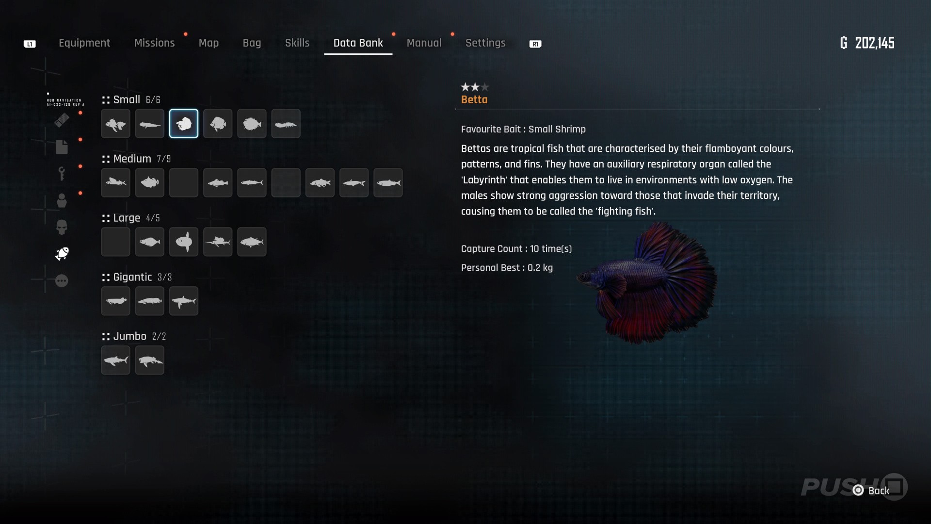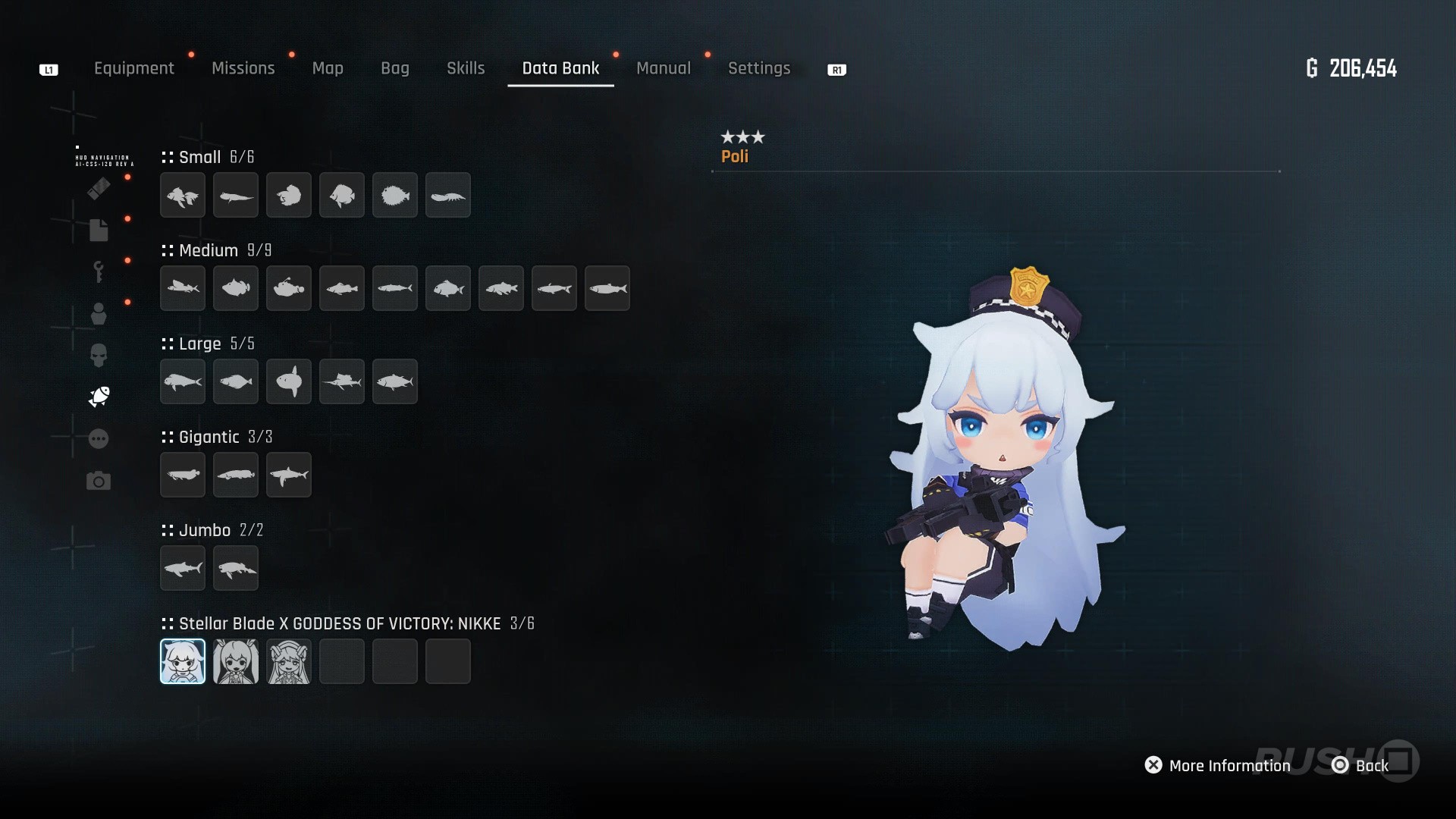 There are a total of 25 fish to catch in Stellar Blade, and before you can even begin you'll need to learn How to Fish . Once you've got to grips with the minigame, you can begin capturing all different types of aquatic wildlife. Remember, you can keep tabs of all the fish you've caught, along with your personal records in the Data Bank . Catching all 25 fish will unlock the Ocean Maid outfit.