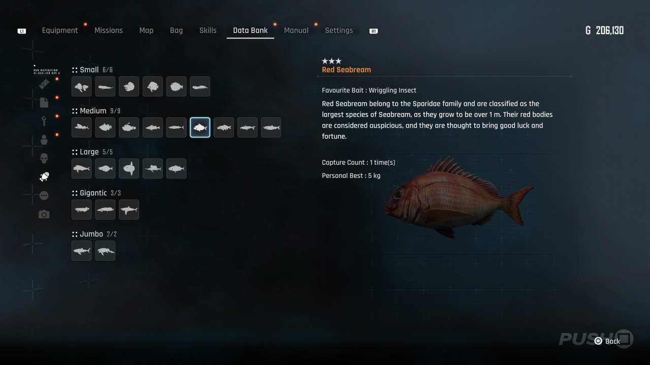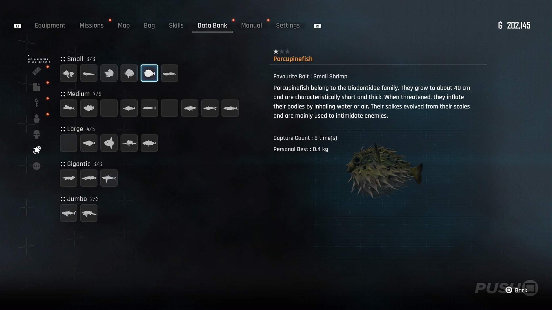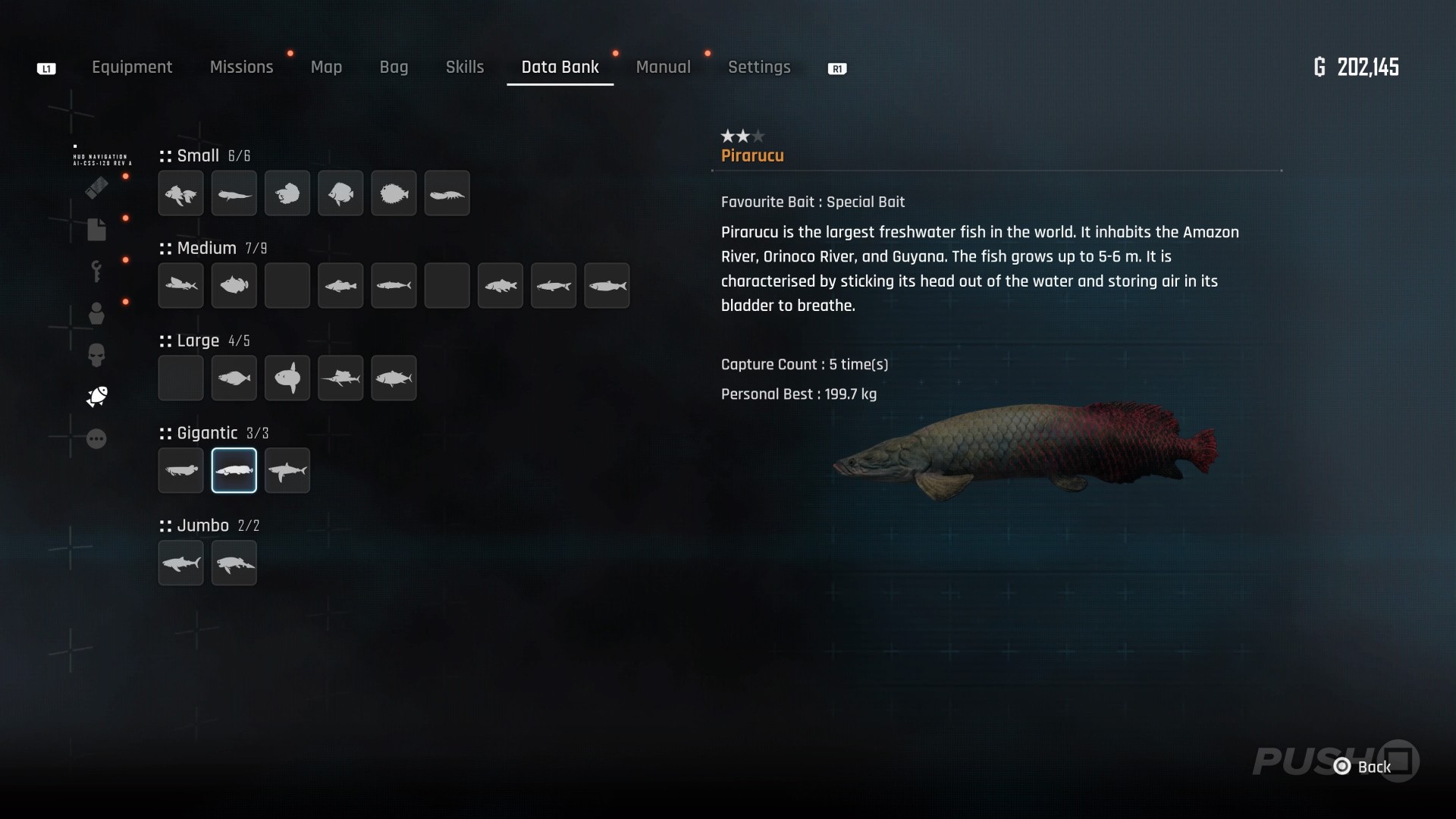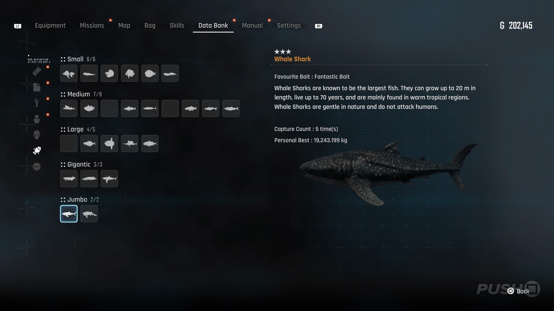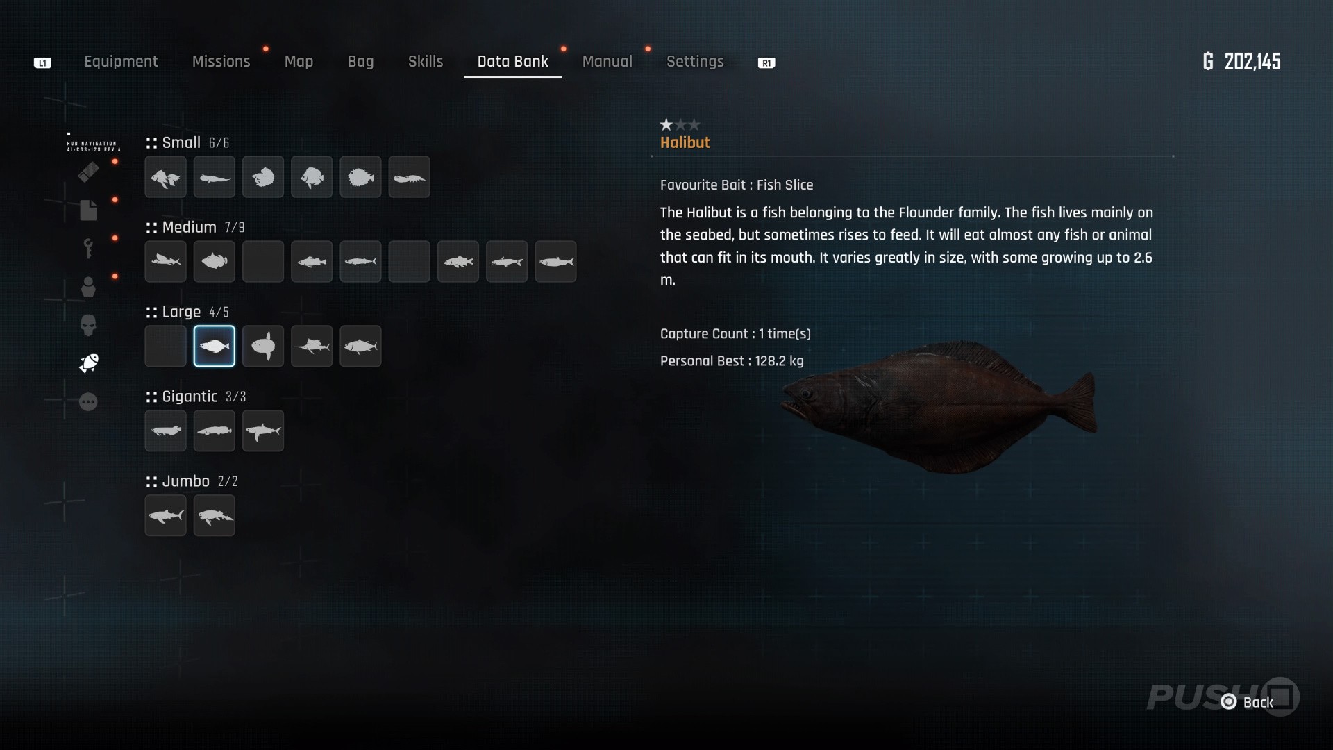 Fish are divided into the following categories: Small , Medium , Large , Gigantic , and Jumbo . The type of bait you use as well as the fishing spot location you select will influence the type of fish you can catch. Below we've listed all fish locations and how to catch them.