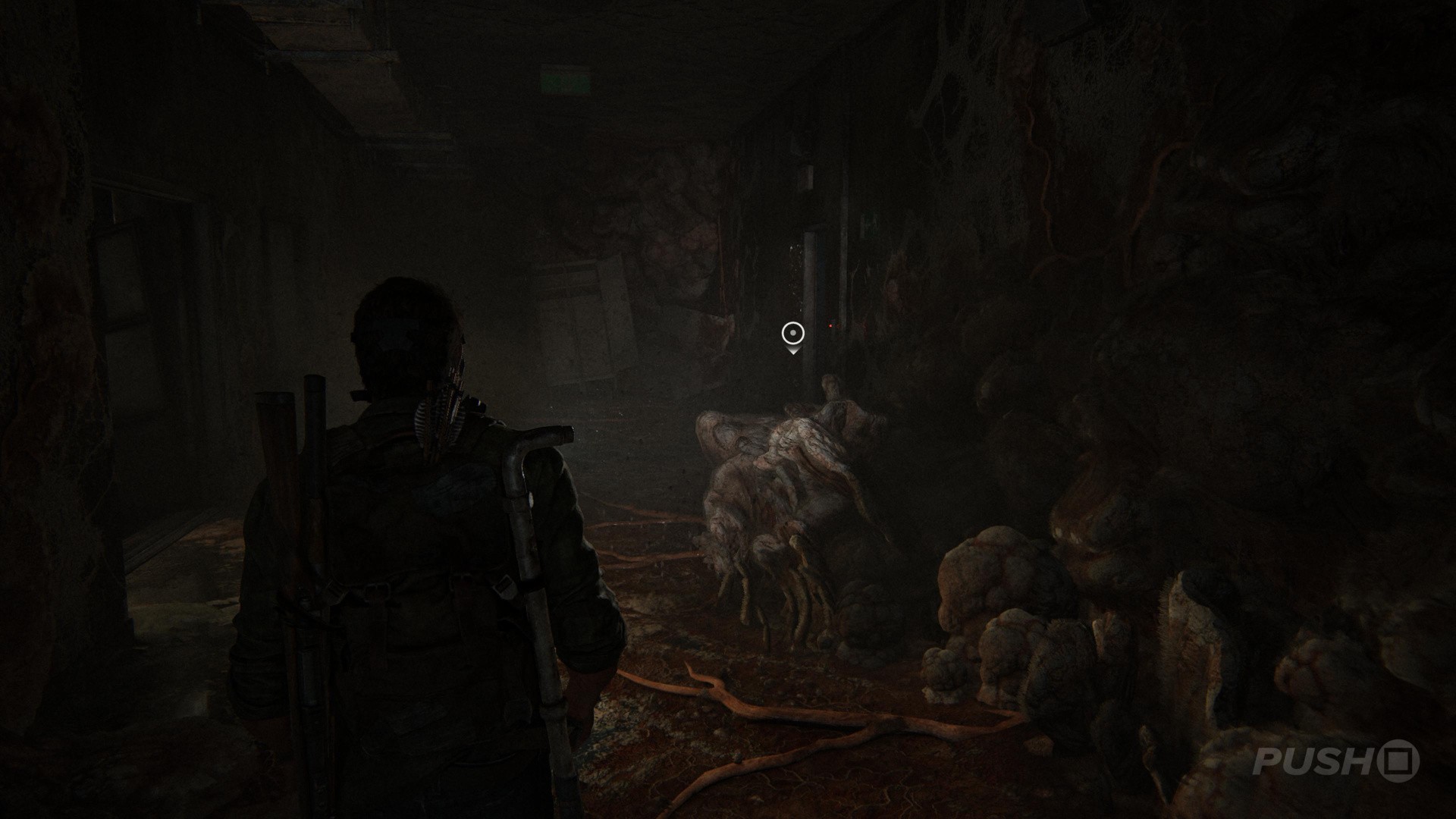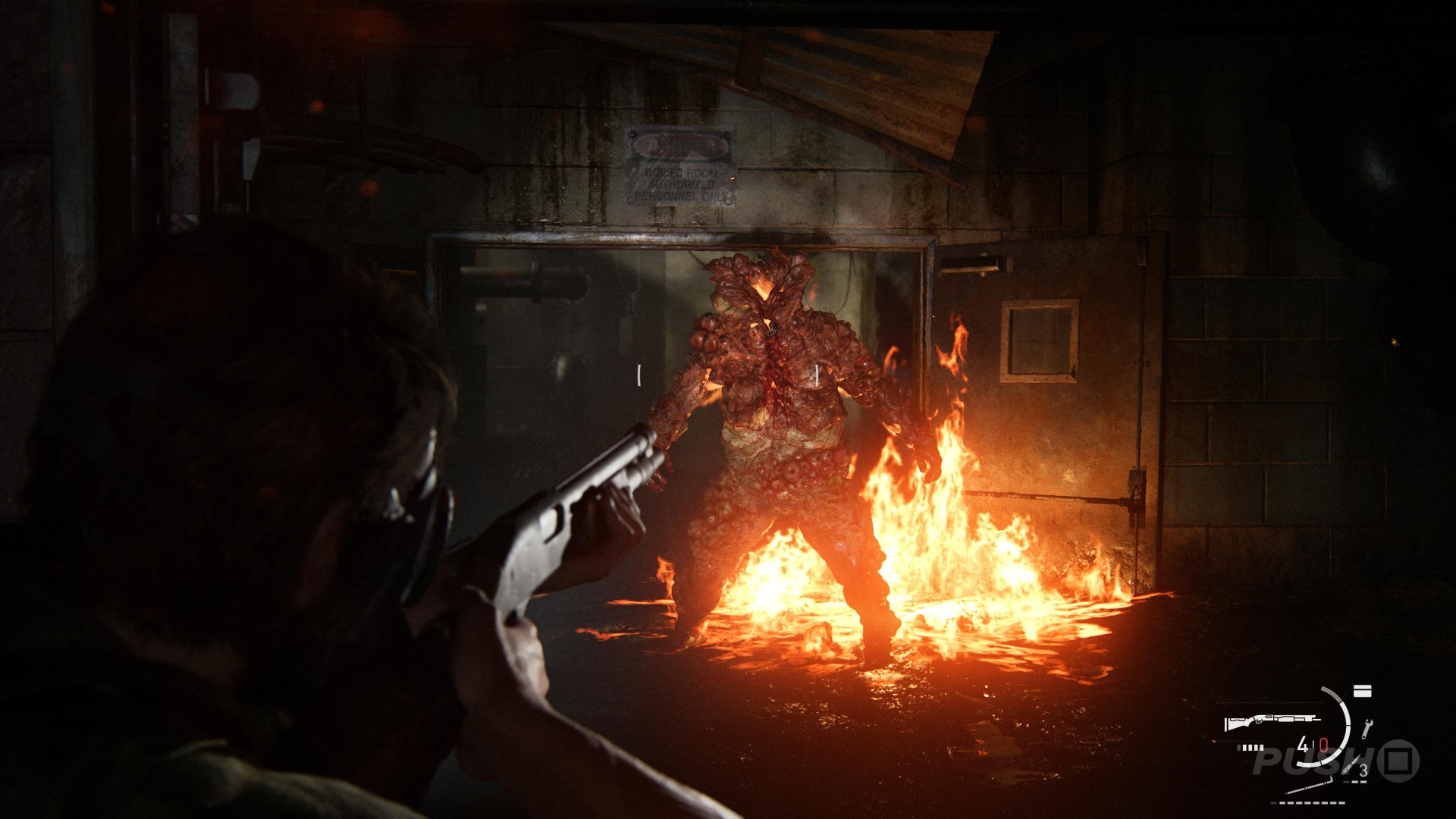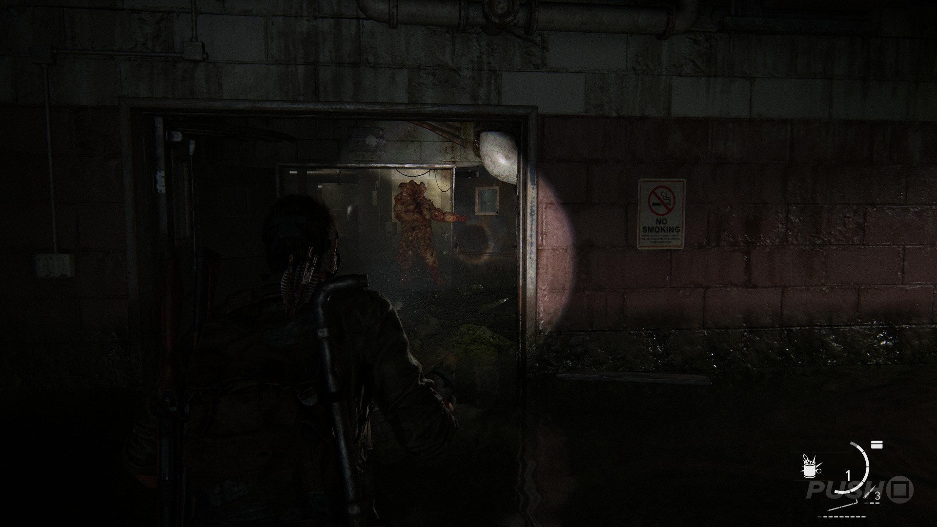 The lights are on, which is brilliant news, but now there's a Bloater on your tail. You don't have much space to manoeuvre in here, so don't take risks and use items like Nail Bombs and Molotovs to do as much damage as quickly as possible. Don't let the Bloater capture you because that's an instant kill. Remember there are other Clickers around here, so keep your wits about you and don't let them get behind you and grab you. Your Shotgun is especially effective in close-quarters.