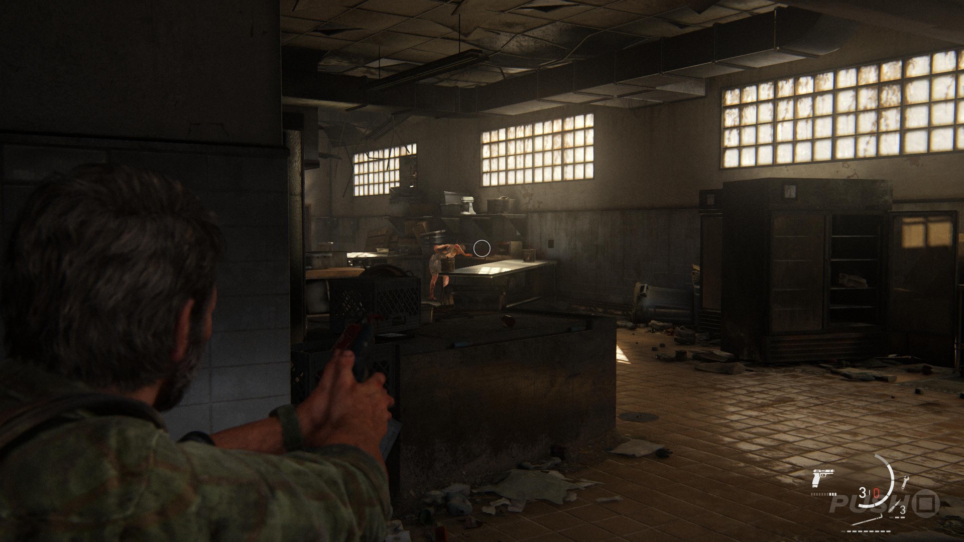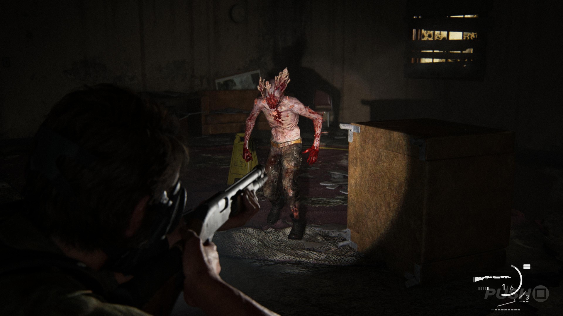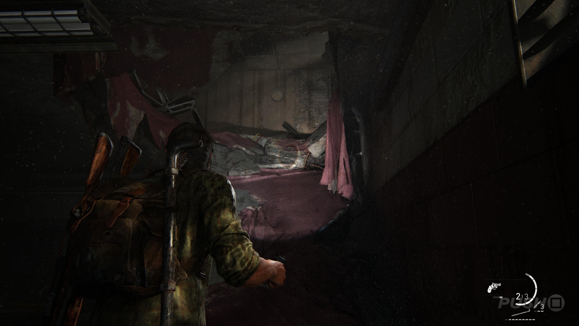 The lights are on, which is brilliant news, but now there's a Bloater on your tail. You don't have much space to manoeuvre in here, so don't take risks and use items like Nail Bombs and Molotovs to do as much damage as quickly as possible. Don't let the Bloater capture you because that's an instant kill. Remember there are other Clickers around here, so keep your wits about you and don't let them get behind you and grab you. Your Shotgun is especially effective in close-quarters.