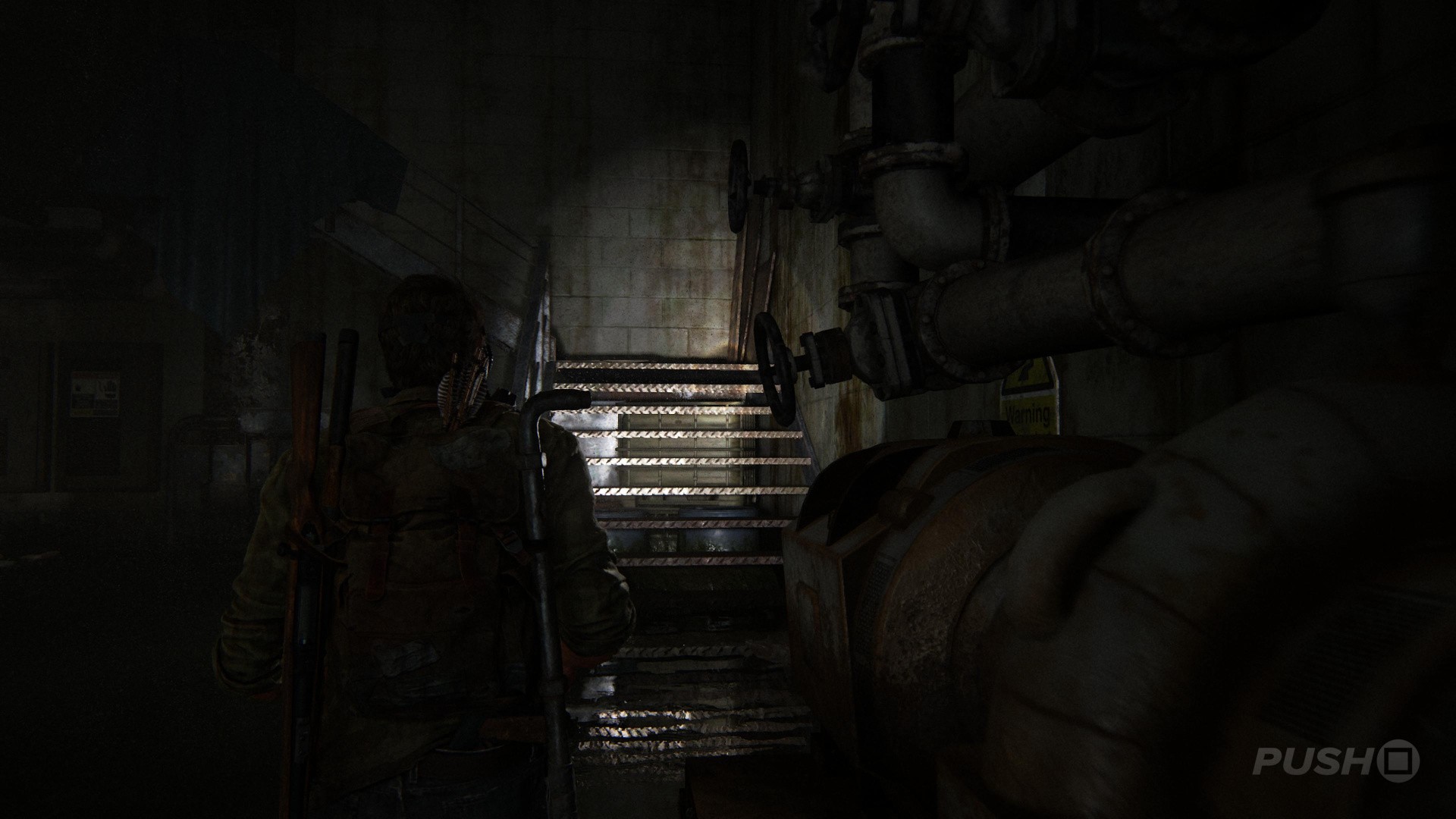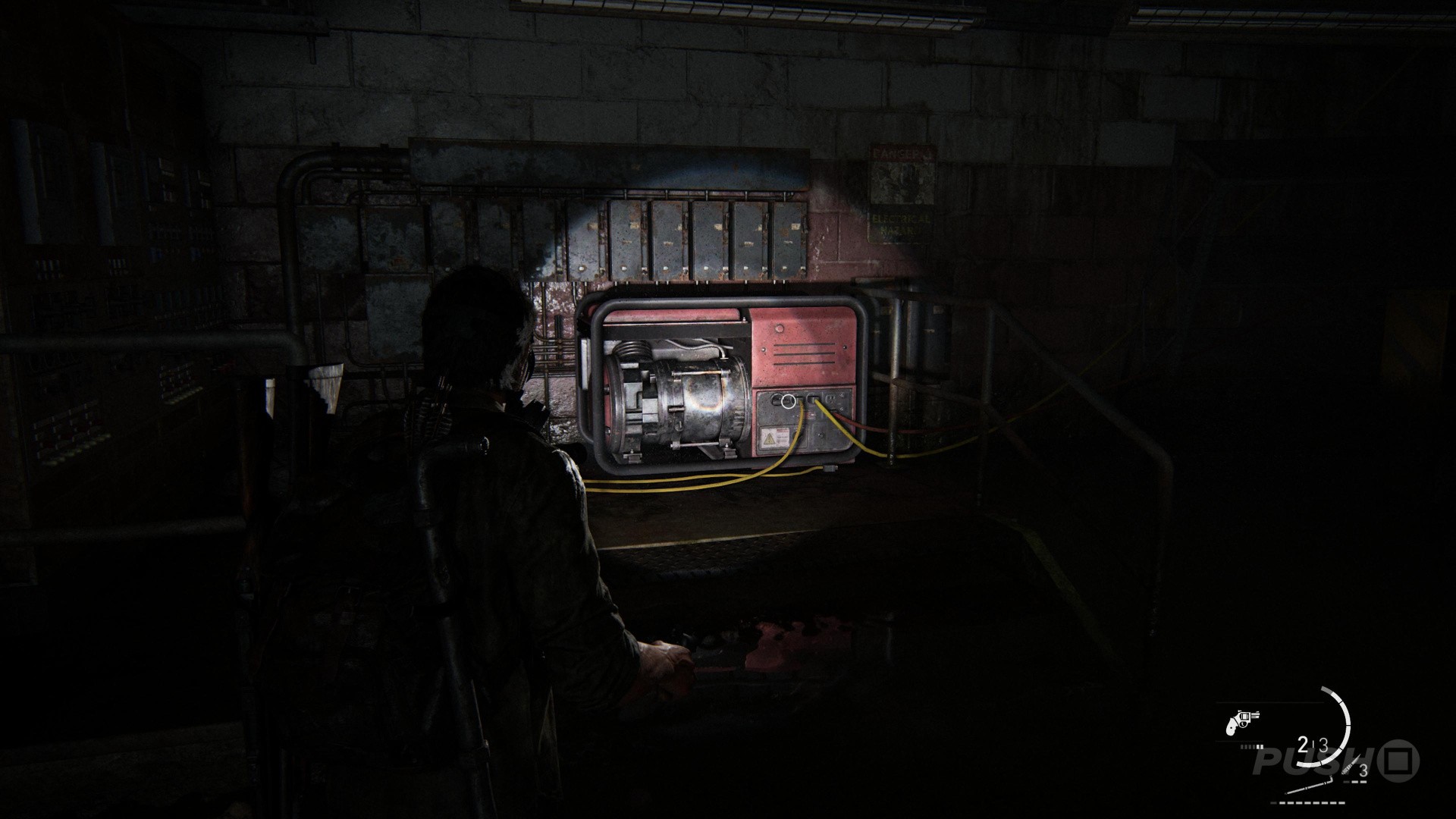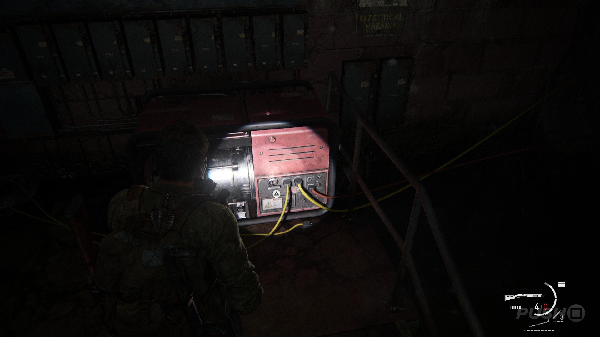 Keep moving forward and Joel will put on his gas mask, so you can be pretty confident of what's coming, right? A bunch of infected rats will rush towards you, but they aren't dangerous, so keep moving forwards. Pay attention to the generator in the room on the right, you're going to need it soon.