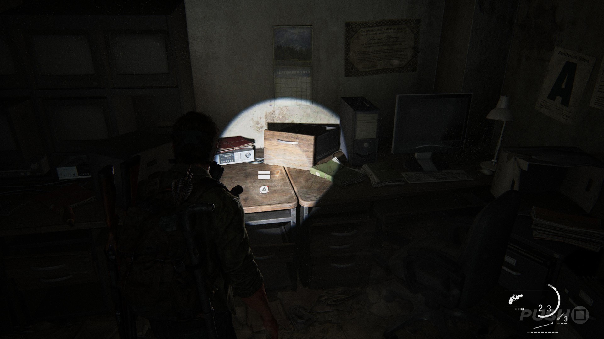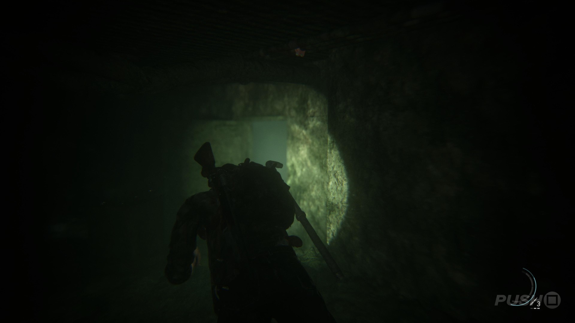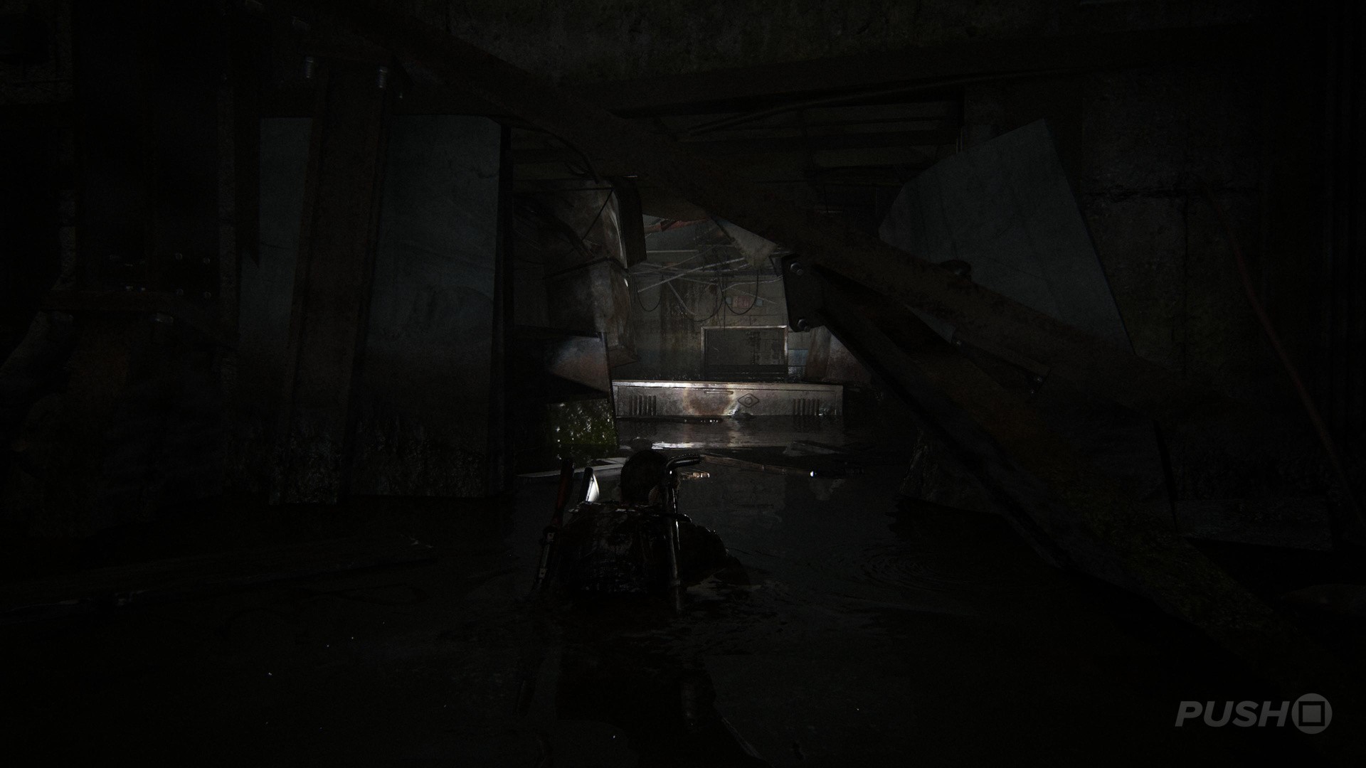 Keep moving forward and Joel will put on his gas mask, so you can be pretty confident of what's coming, right? A bunch of infected rats will rush towards you, but they aren't dangerous, so keep moving forwards. Pay attention to the generator in the room on the right, you're going to need it soon.