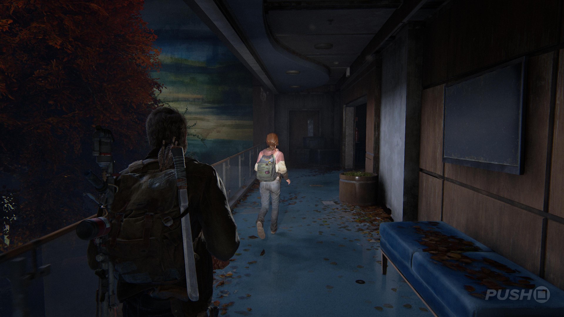 You're not in good shape! During the cutscene you'll need to take out two bandits, then follow Ellie out of the Science Building as best as you can. When the bandit finds you, wait for Ellie to flank him, then get a headshot. Keep moving until you blackout and reach the exit. Next up, is The Hunt.
