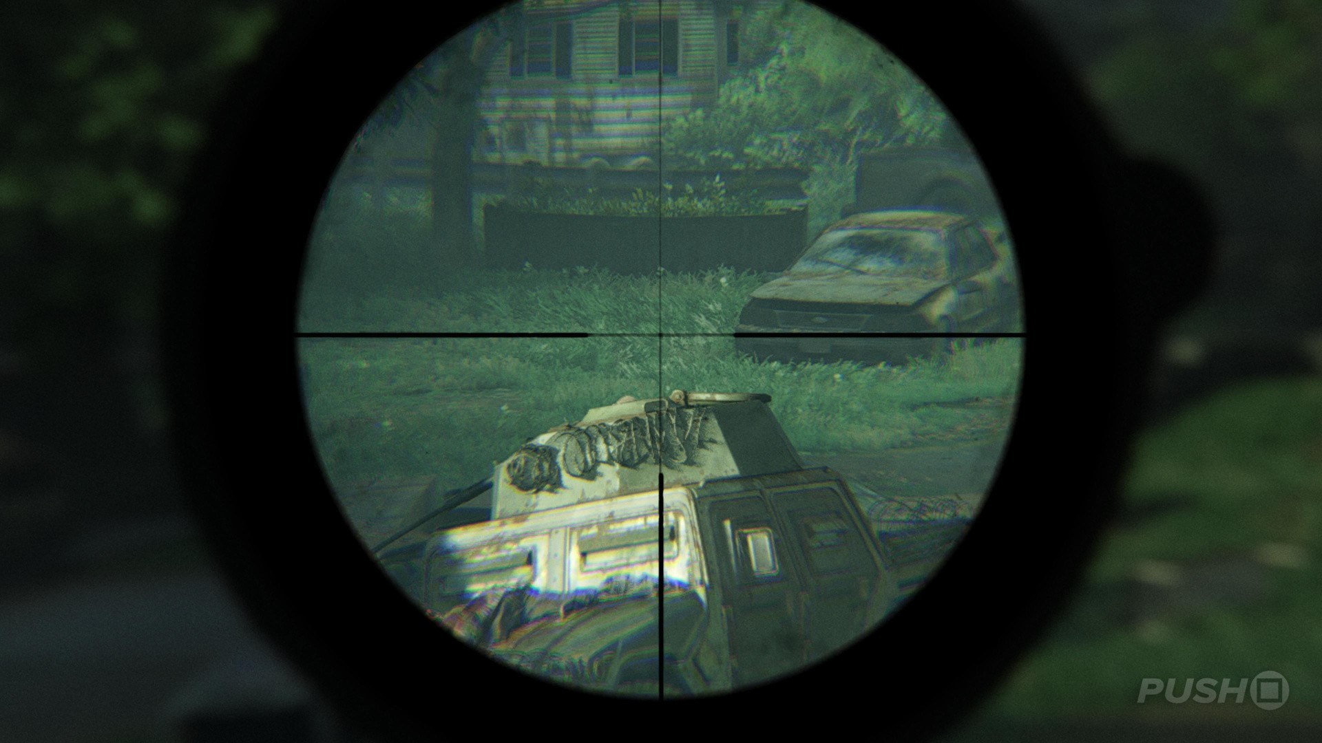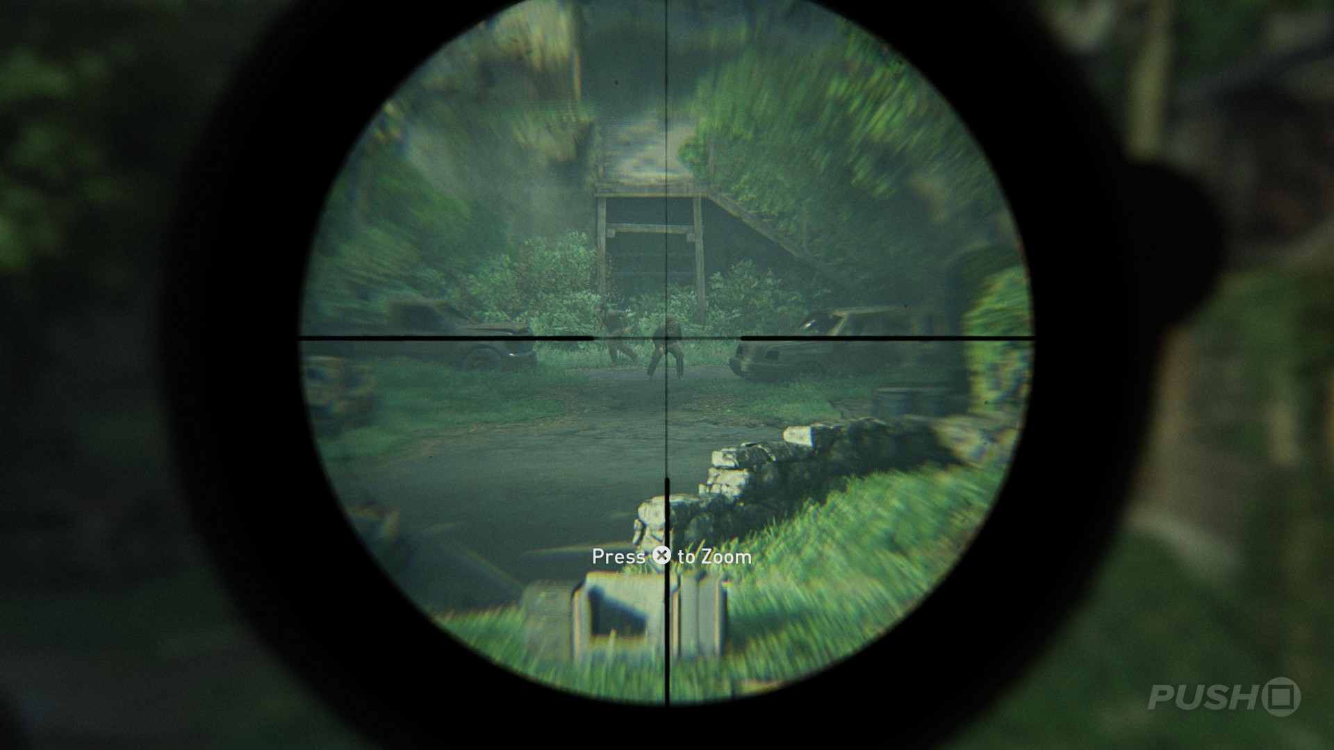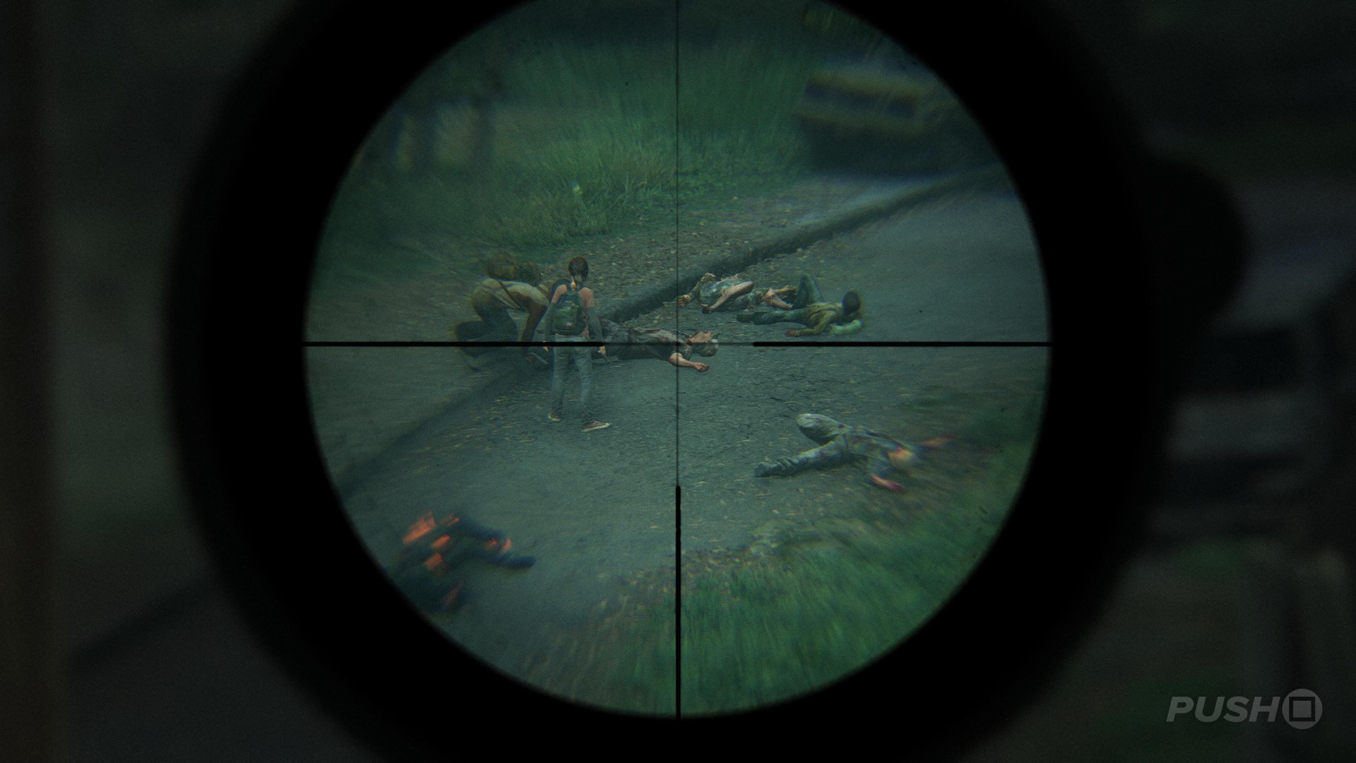 Now time for another one of The Last of Us' most iconic scenes. In the sniper nest you'll need to cover Sam, Henry, and Ellie by taking out the bandits who are pouring into the street. You can go for headshots, but body shots will mostly do the job. Eventually the Humvee from earlier will show up. Continue to take out the bandits until the guy starts tossing Molotovs from the Humvee's hatch. Deal with him and watch the chaos unfold. Unfortunately, there's still more to come: Clickers will pile onto the street. Kill as many as you can, protecting your friends, and then watch the cutscenes as you continue onwards to the Hydroelectric Dam.