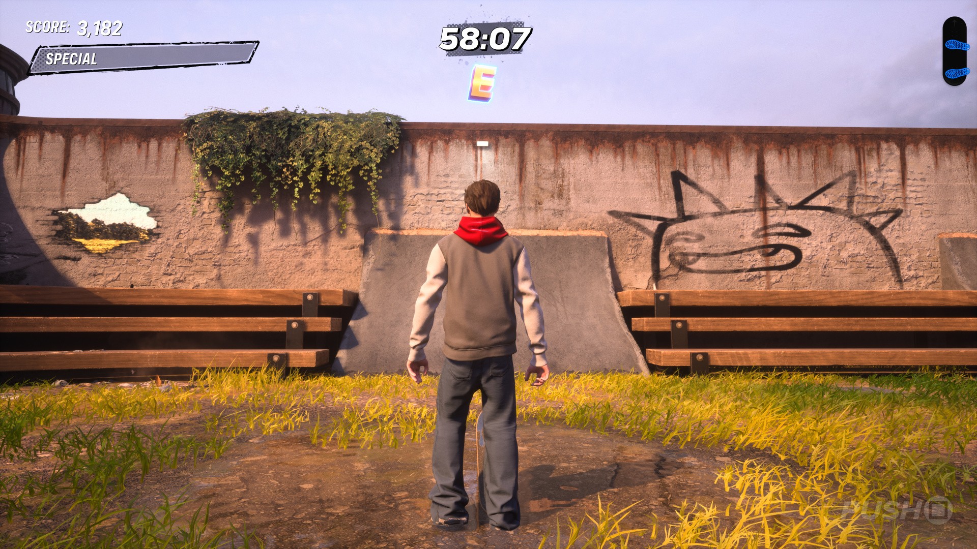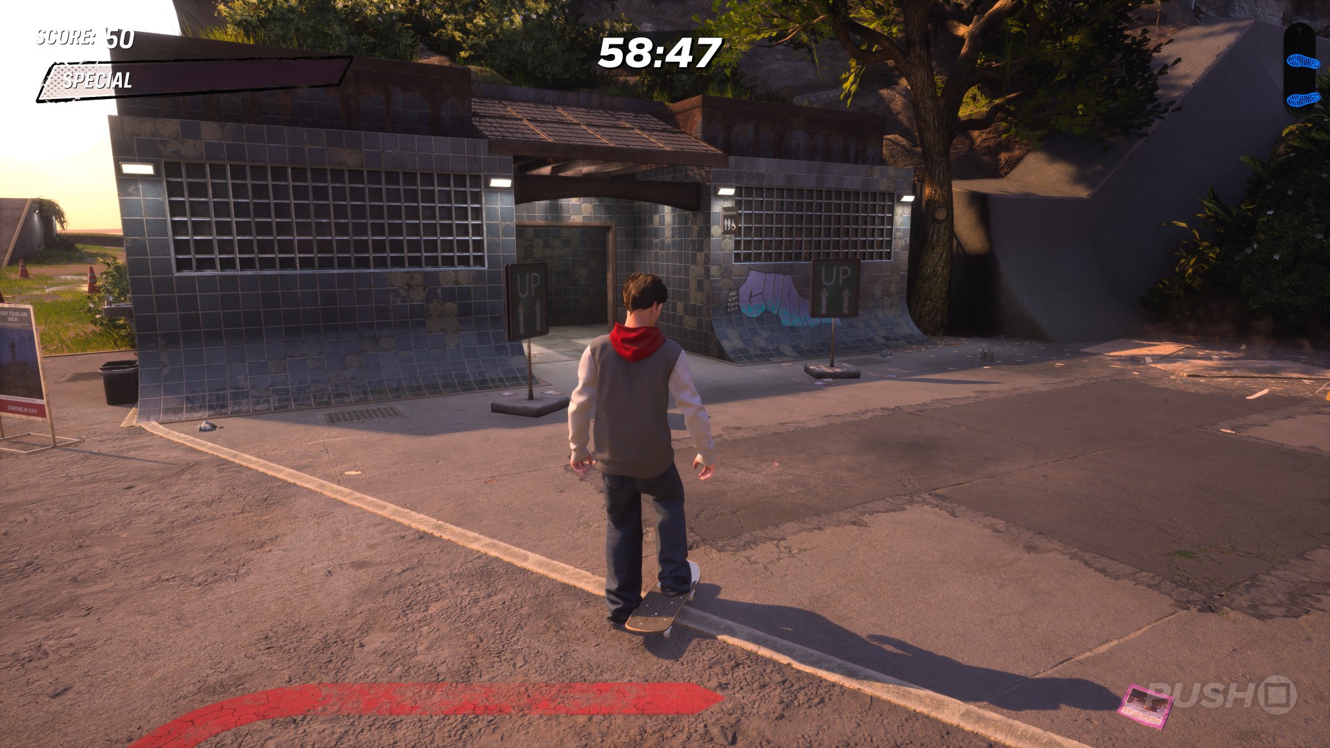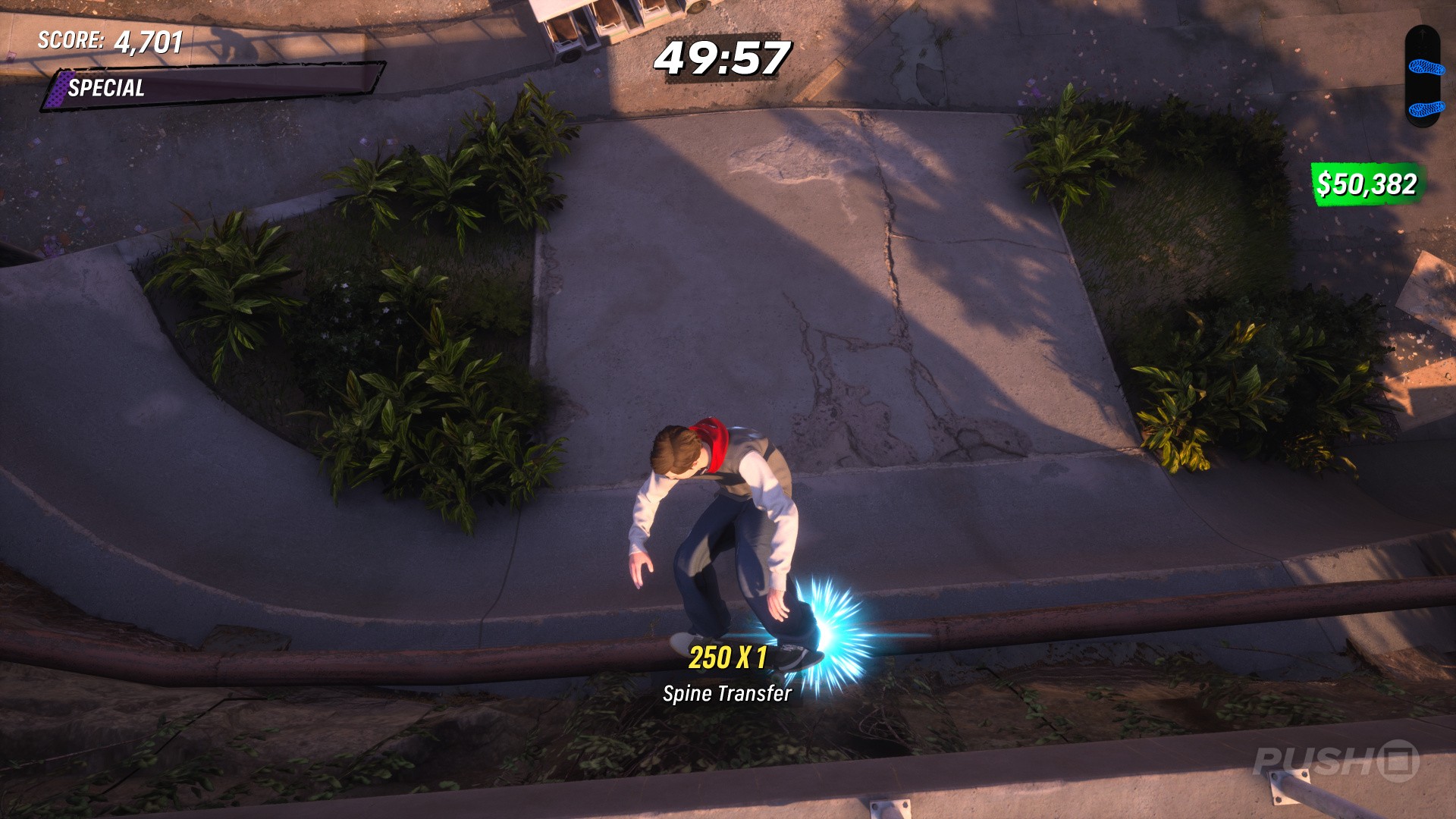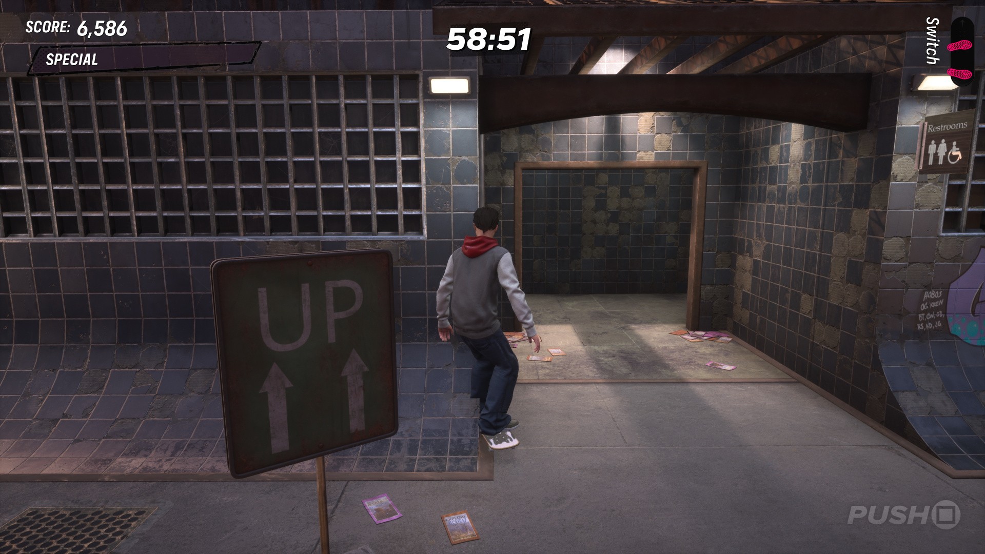 - From there, go left and use the quarter pipe on the bathroom's left-hand side to spine transfer down, collecting this Cash on the way.