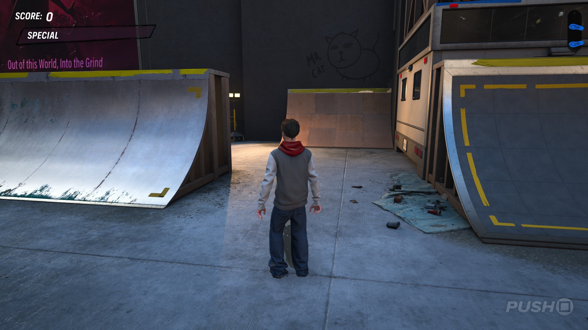 - From level start, immediately turn left to see a quarter pipe.