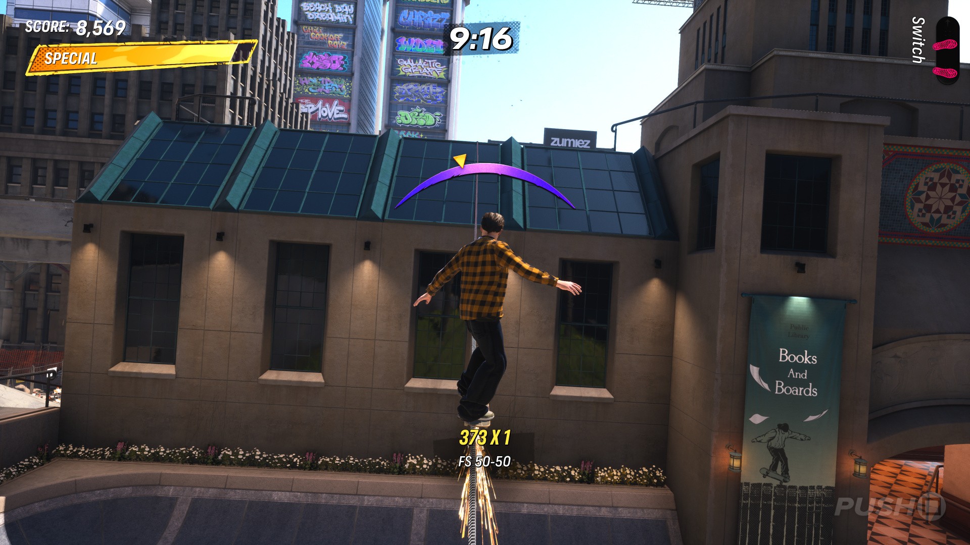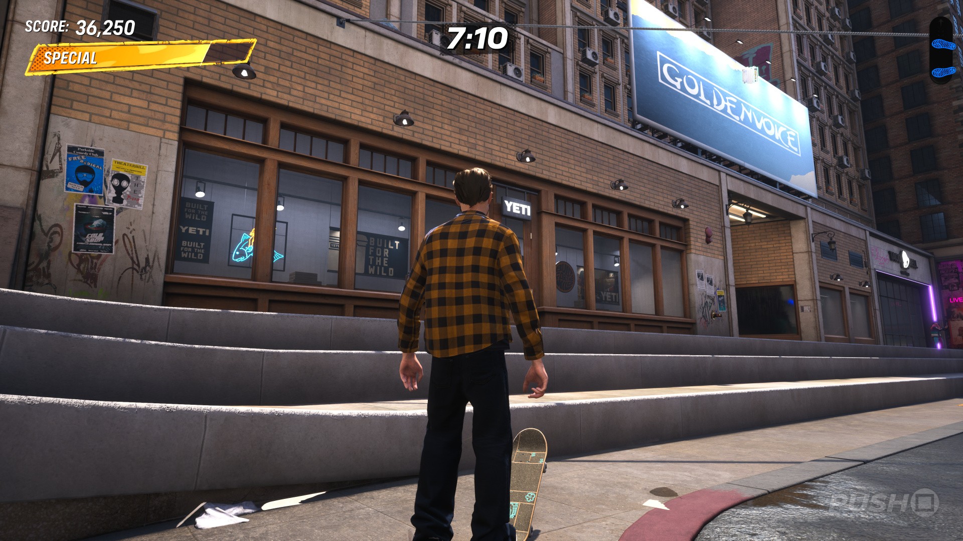 - Go to the far corner where there's a store called Yeti (next to Taco Bell). Wallride the shopfront, jump up and grind the roof to get onto it. Then, wallride the billboard to get the Cash.