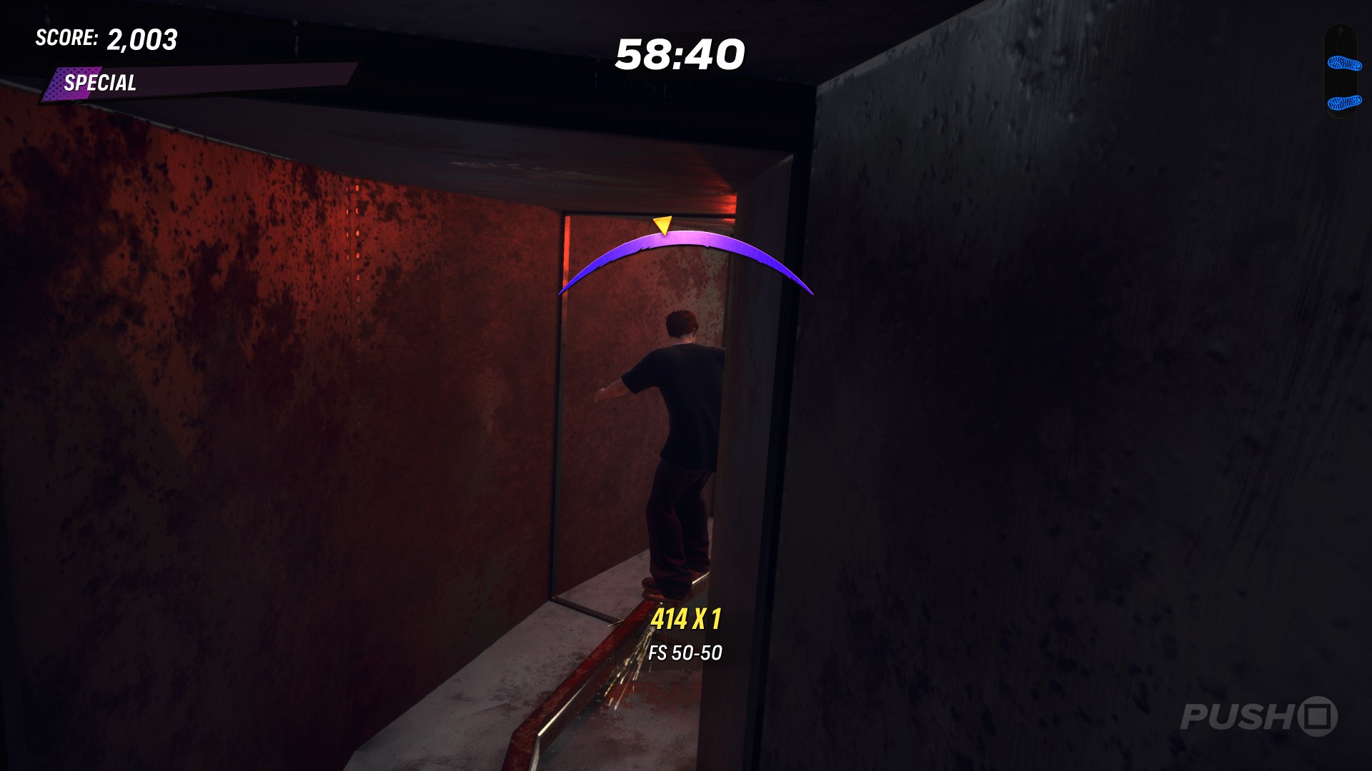 - Return to level start. Look left and go up the quarter pipe to grind the yellow rail, then jump to the wire to get the Cash.