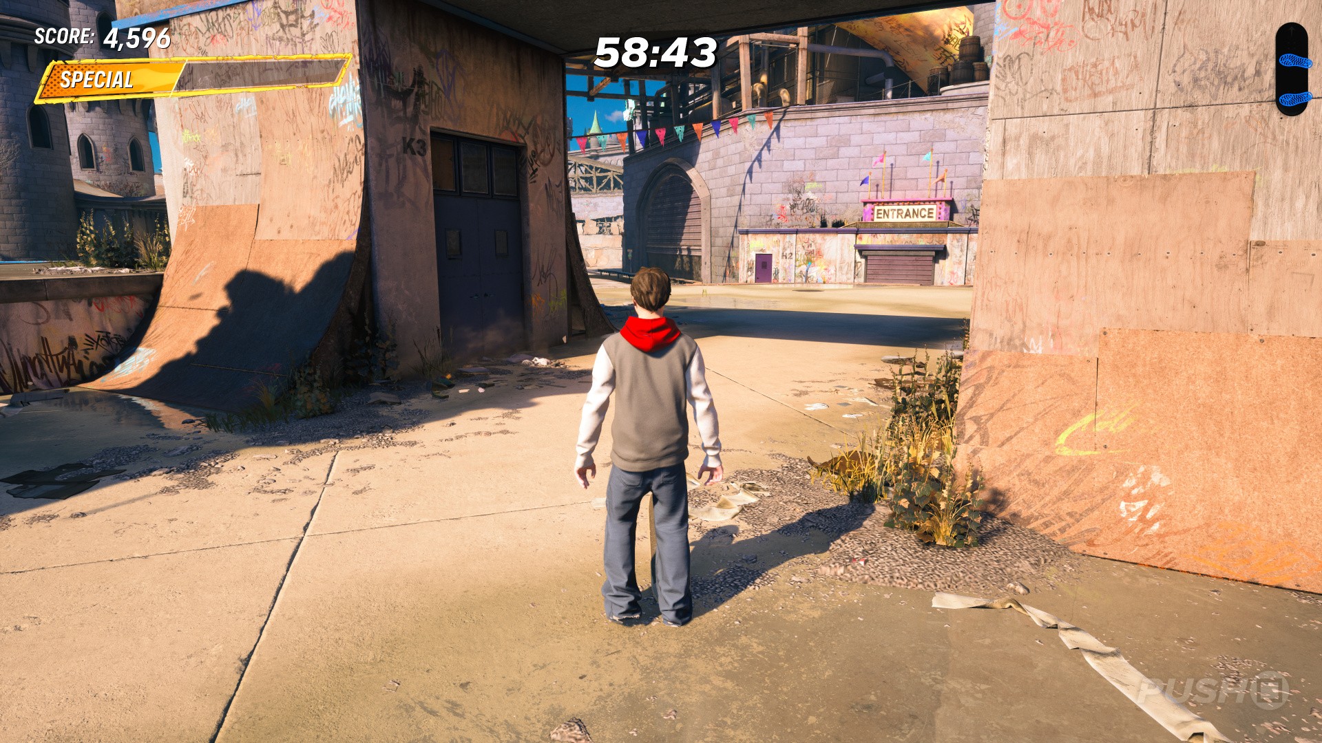 You need to collect all the letters that make up the word "SKATE". You can collect them in any order, and they're scattered around the level. Here's where to find them.
