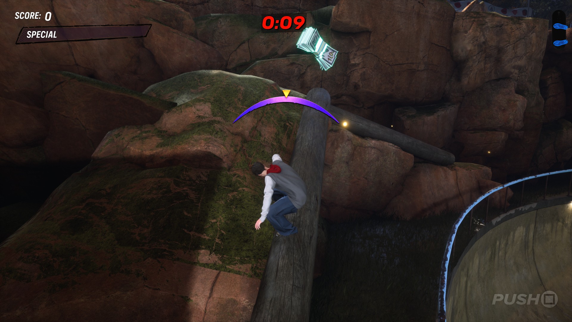 - From level start, go left of the elephant statue and follow the path to the end. To the right of the quarter pipe is a log you can grind to get this Cash.