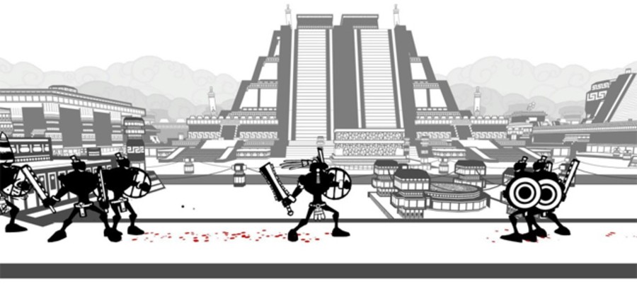 With an art direction as defined as MadWorld and a fighting system as flamboyant as Bayonetta, Arizonian upstart Team Colorblind could be accused of plagiarising vaunted Japanese developer Platinum Games’ winning production blueprint with Aztez. However, this stylish beat-‘em-up has an innovation of its own: an empire management system. Apparently, chomping roast chickens while raining fist fury on dumb-struck punks has grown tiresome since the days of Final Fight, so this upcoming monochrome excursion aims to add some depth to its succulent combative core.