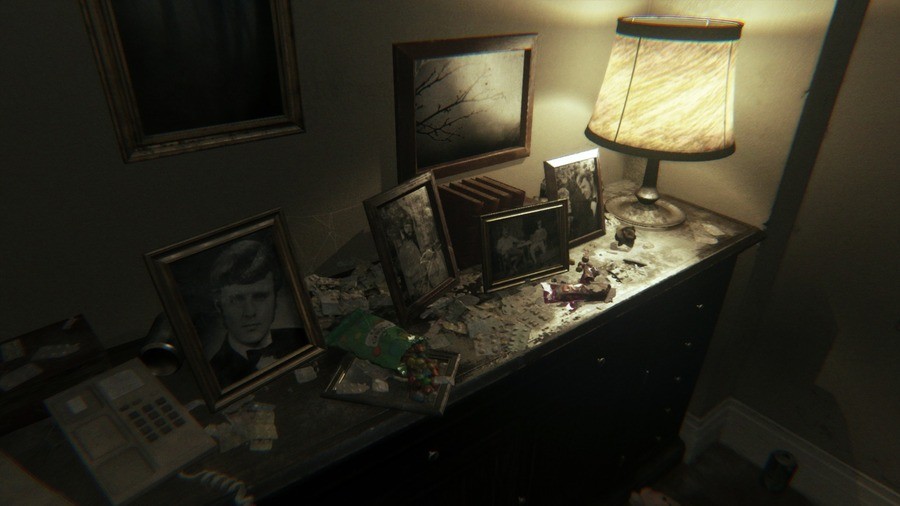 Strutting through the microscopic game space caused me to roll my eyes at first; the outdoor rain storm, chilling radio message, and old family photographs are all survival horror clichés at this point. Then you exit the room and do it all over again – and again and again. By the third or fourth time, I was in a pretty lax state of mind, and that’s a dangerous place to be. See, it’s around this point that the world starts to change: subliminal sound samples play, doors open and close, and you realise that you’re not alone.