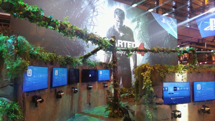 Could the public be about to get its first taste of Uncharted 4: A Thief's End at Paris Games Week? A picture of the platform holder's booth has emerged on Twitter, showing what looks like a section built around Naughty Dog's hotly anticipated sequel. While this could be for Uncharted: The Nathan Drake Collection, if you look closely at the television on the right, there's a logo for the sequel on the PlayStation 4's main menu.