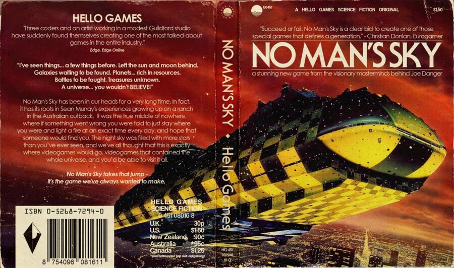 NeoGAF user ichtyander has ingeniously merged the two to form a selection of PS4 box arts, complete with worn edges and a blurb on the back. They're wonderfully executed, and do a great job of showing just how well Hello Games has managed to recreate the specific style of classic sci-fi. The game box wouldn't look out of place sat amongst your book collection with one of these brilliant covers inserted.