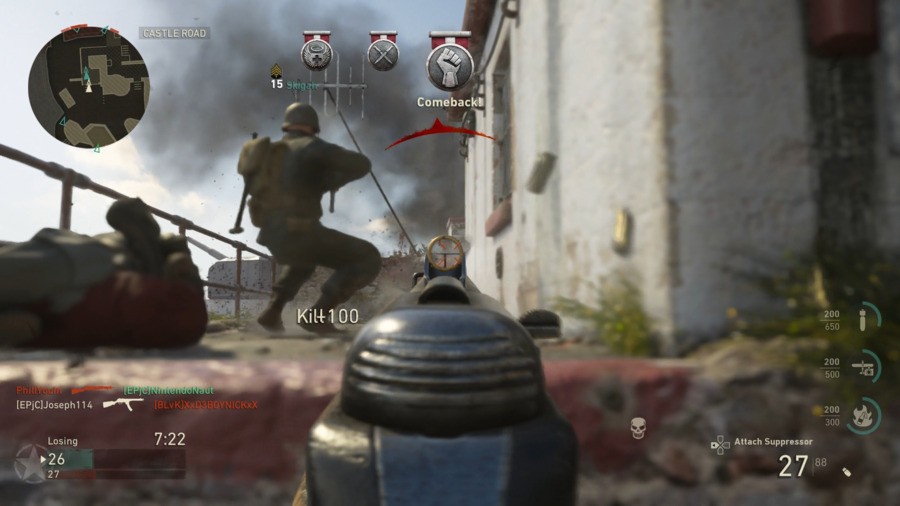 That’s why Call of Duty: WWII is a breath of fresh air. It strips the series of its recent turns toward speed and movement with extra mechanics, instead opting for a simpler control scheme identical to Black Ops; there’s no boosting, sliding, or wall-running – just the good, old dolphin dive. It’s a slower-paced, simpler Call of Duty with no frills, but it still has surprising shifts by upsetting long-established approaches to the series’ customisable systems. Some of these shifts are superficial, and more gameplay and balancing tweaks are needed, but as the beta stands, it holds promise for a Call of Duty multiplayer we might like to return to often.