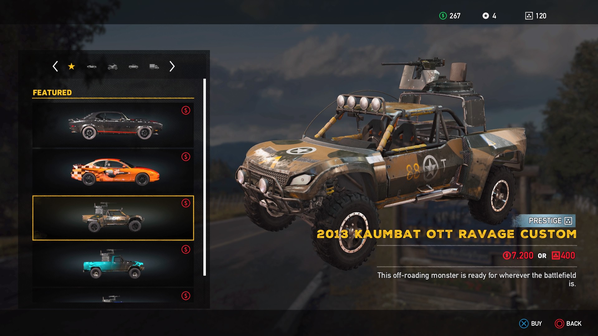 | This off-roading monster is ready for whatever the battlefield is. | $7,200 or 400 Silver Bars |