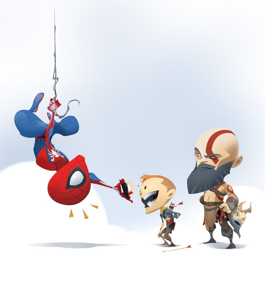 God of War developer Sony Santa Monica Studio also gets in on the fun with this cutesy depiction of Kratos and Atreus meeting the PlayStation 4's newest hero.