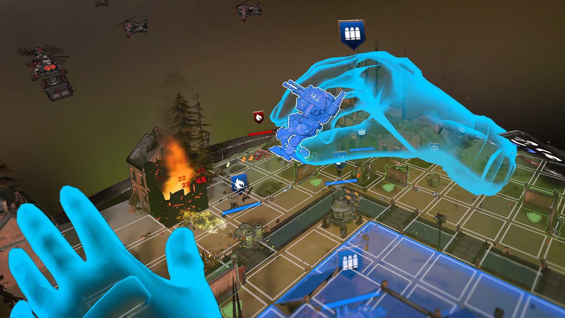 The game’s visuals and perspective were originally inspired by tabletop wargames, even down to the painterly art style where miniature mech units almost feel like they’ve been painted by hand. When matched with VR, this unique perspective gives the feeling of playing with a battlefield diorama, but with the magic of your units animating – lean in and watch them instantly come to life or pick up your units to examine them up close.