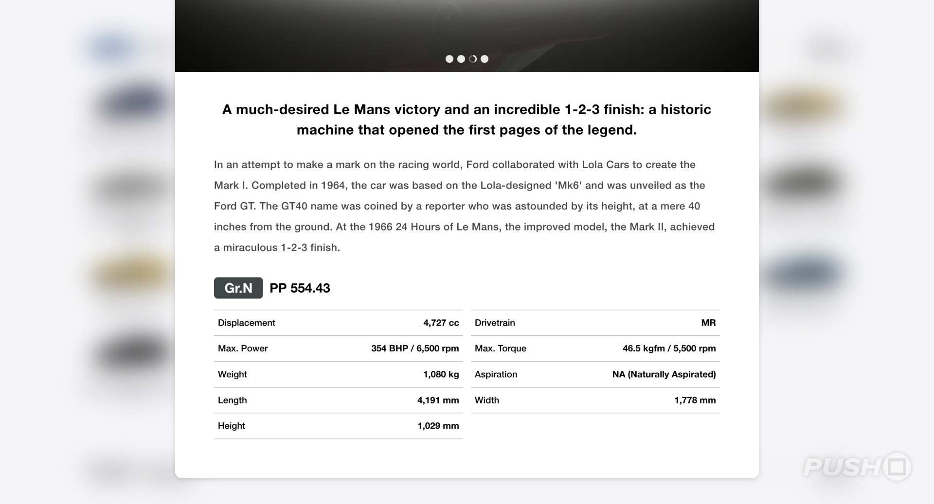 This is all information you can find in GT7 itself, but it's great to see everything made available on a dedicated page — especially one as well-crafted as this.