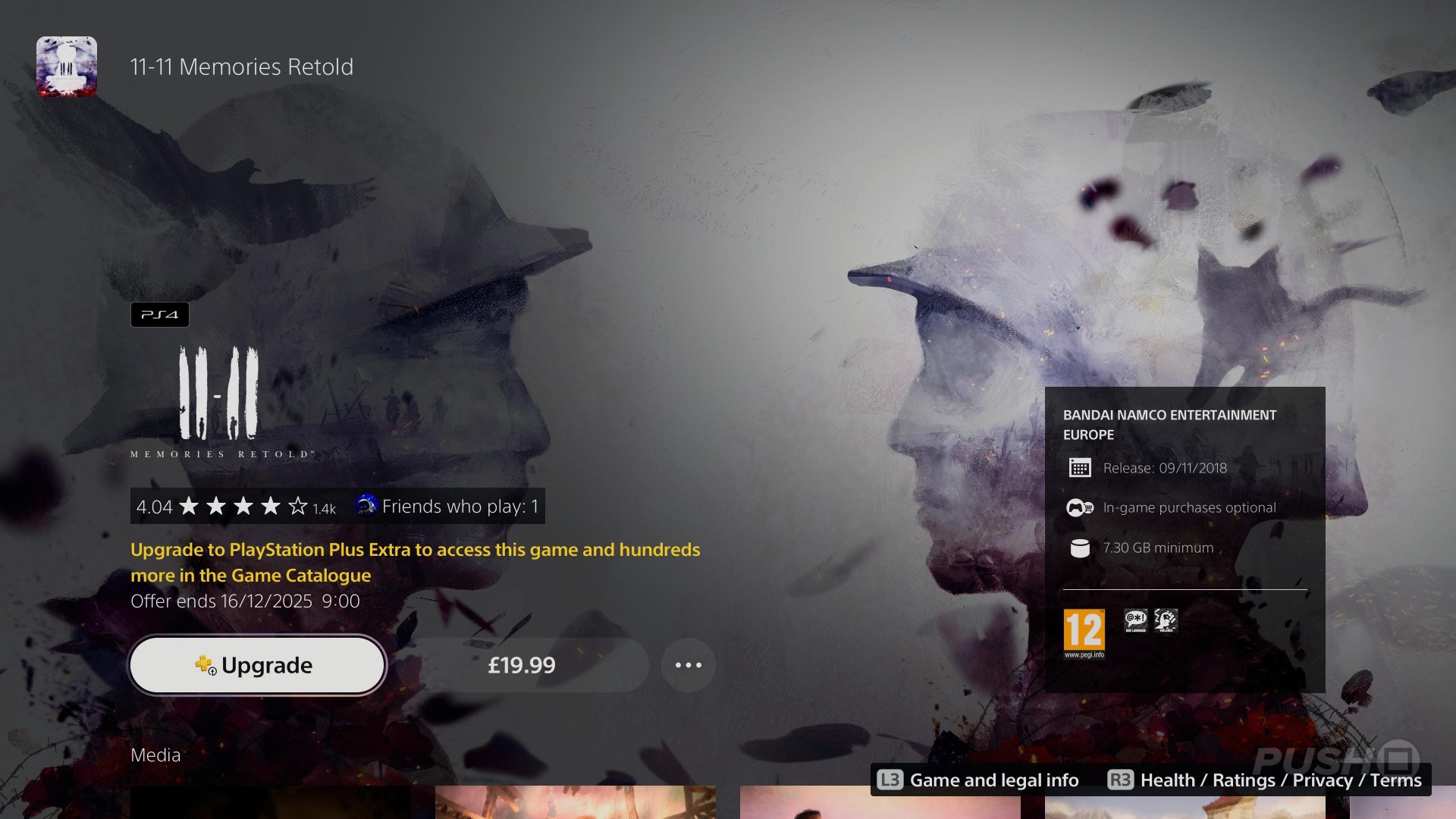 A 10th PS Plus Extra game has been added to the list of PS5, PS4 leaving the membership tier in December 2025. While it's not appearing in the Last Chance to Play section in the UK just yet, 11-11: Memories Retold has been tagged with an expiry date of 16th December.