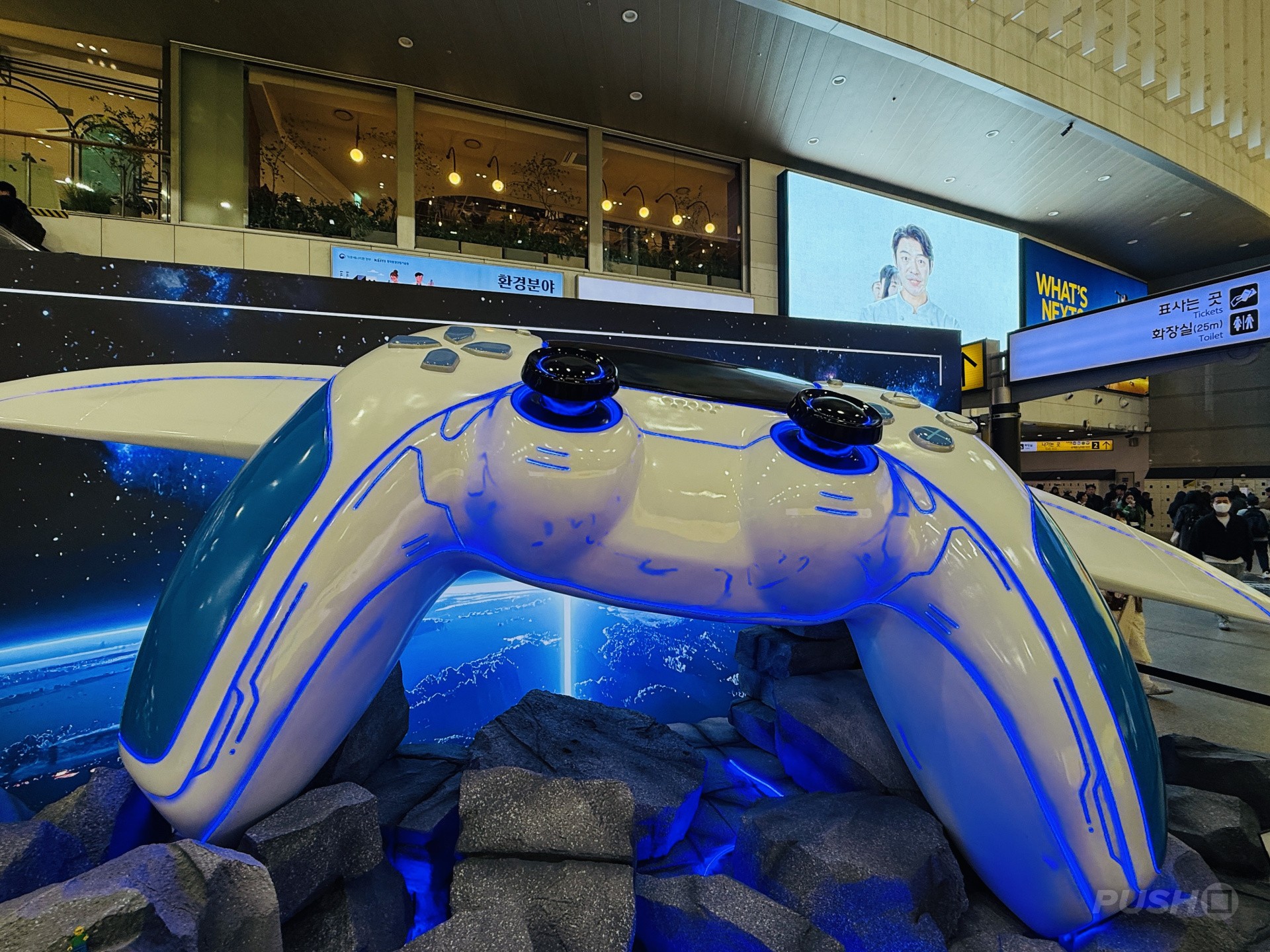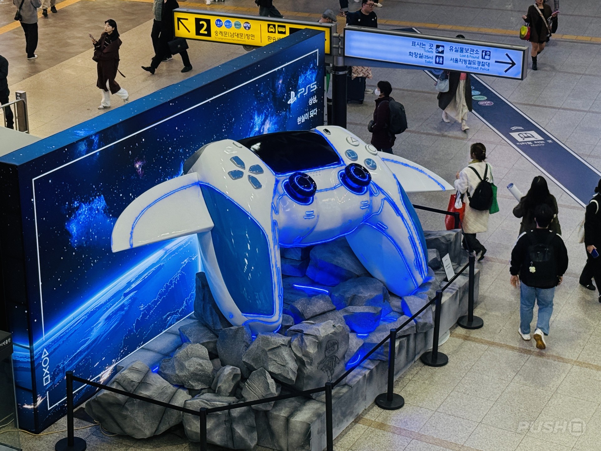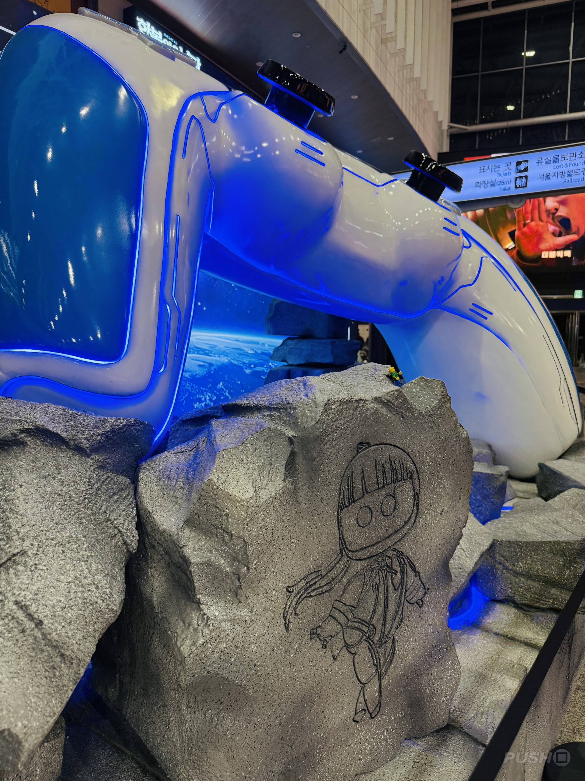 The installation itself is simple but beautifully executed: a rocky surface makes way for Astro Bot’s distinctly DualSense-shaped glider, which illuminates the surrounding area and instantly catches the eye.