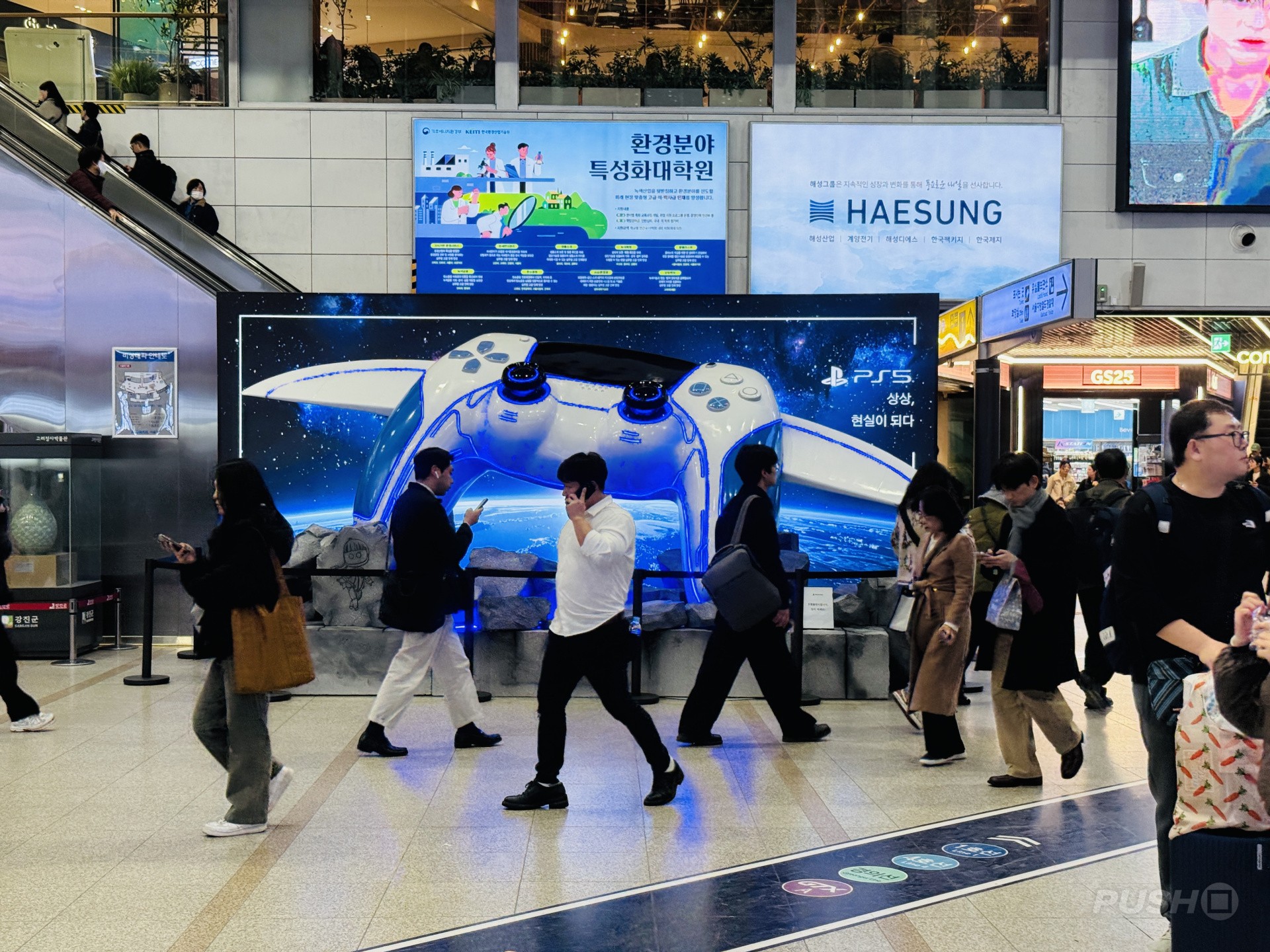 We were invited to check out this one in South Korea’s cavernous Seoul Station, which sits between the main foyer and its football stadium-style wraparound LED screen. (Promoting the latest single from ITZY, of course.)