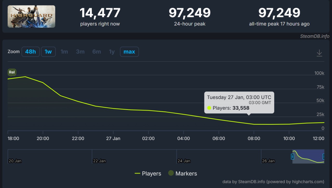 That's the question posed to many live service games in this day and age, and luckily for Wildlight Entertainment, it is at least doing far, far better than Concord. While PS5 player numbers aren't shared by Sony, we can see on the PC platform Steam that it achieved 97,249 concurrent users at its launch day peak.