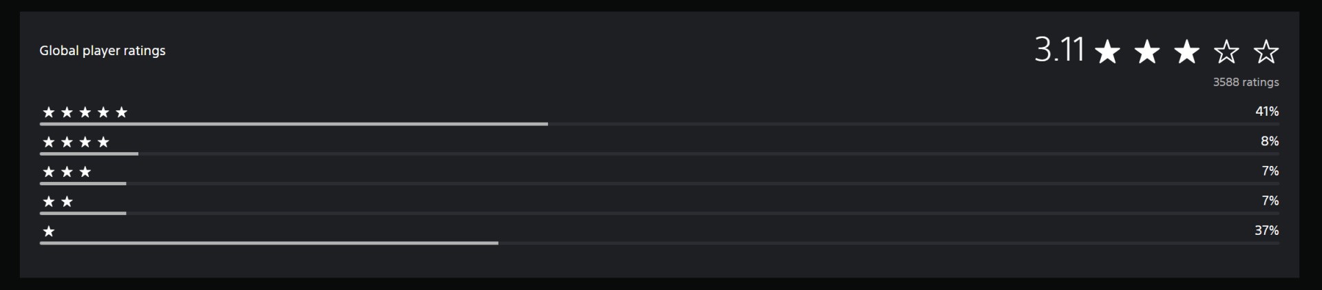 While there has been a player base there on release day — a lot in part to its free-to-play launch — user reviews have not been quite as positive. Currently, the PS5 version has a user rating of 3.11 out of five stars, with the ratings split almost equally between one and five stars.