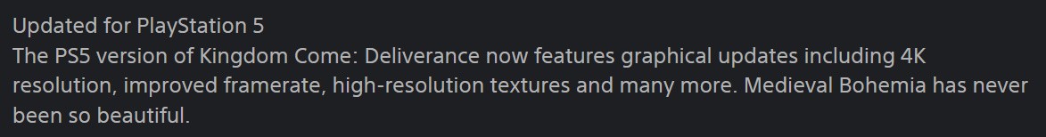 Warhose Studios hasn't confirmed a PS5 version of the first game is in the works, but it was claimed last year that such a version is on the way by PlayStation Game Size. With the new text string on the PS Store, it appears this new edition is indeed real.
