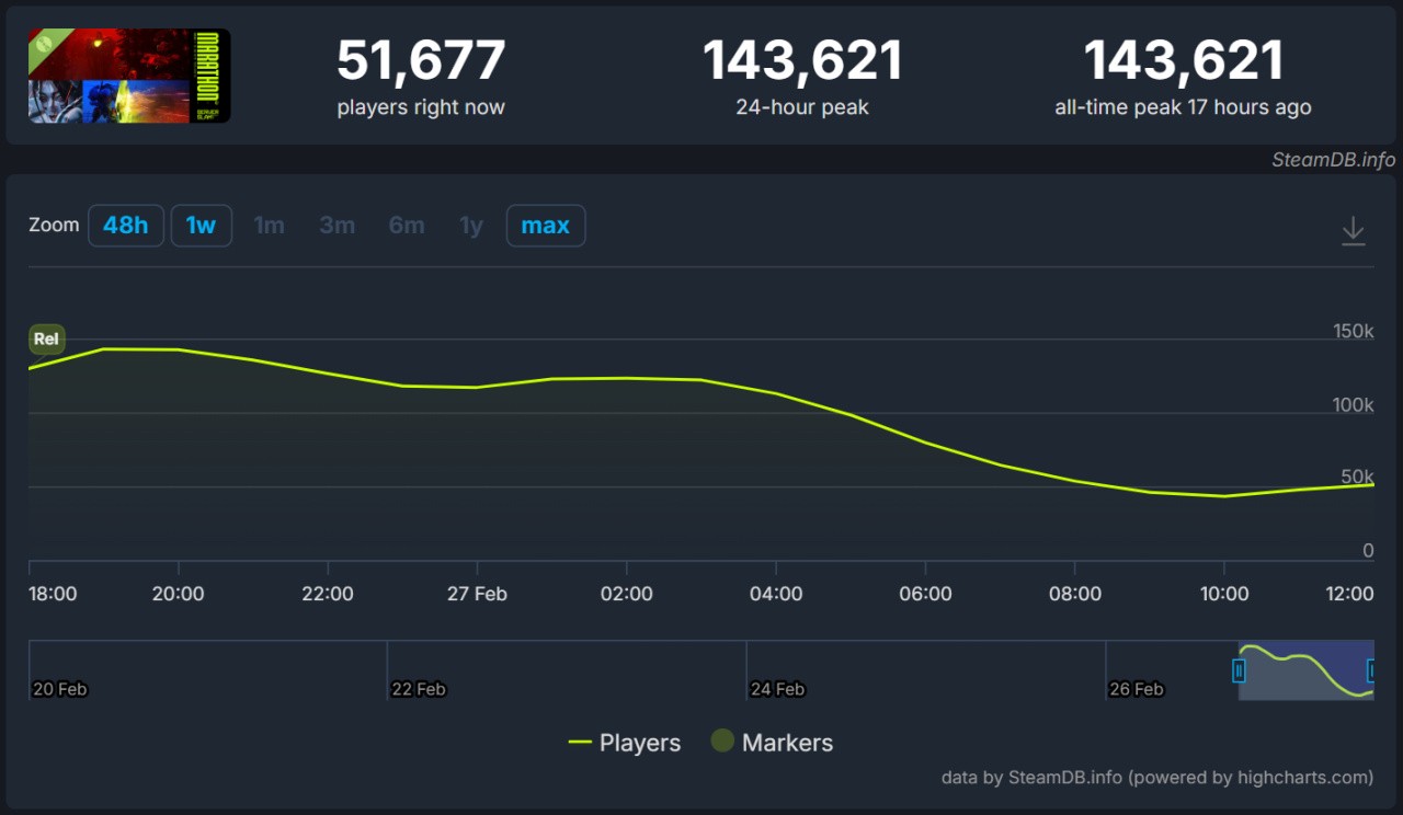 With the weekend approaching, the chances its peak player count increases are high. There's no way to track console users on PS5 and Xbox Series X|S, but it's generally agreed that if a game or beta test is proving popular on PC, it'll be doing similarly well on console. You can learn more in our Marathon Server Slam guide.