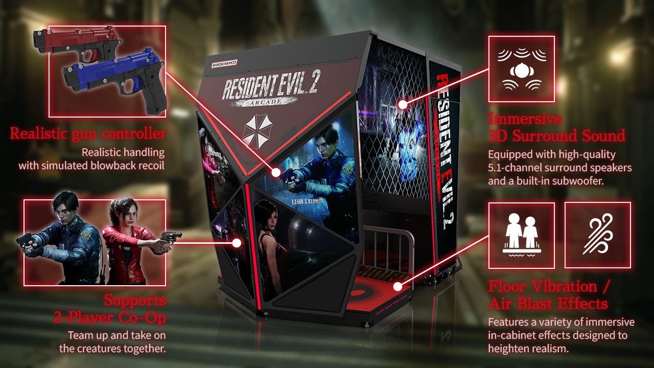 The state-of-the-art cabinet will include all the contemporary bells-and-whistles, including 3D audio, floor vibration, and air blasts. Combined with cutting-edge lightguns, these promise to bring the immersion of the Raccoon City Police Department to life.