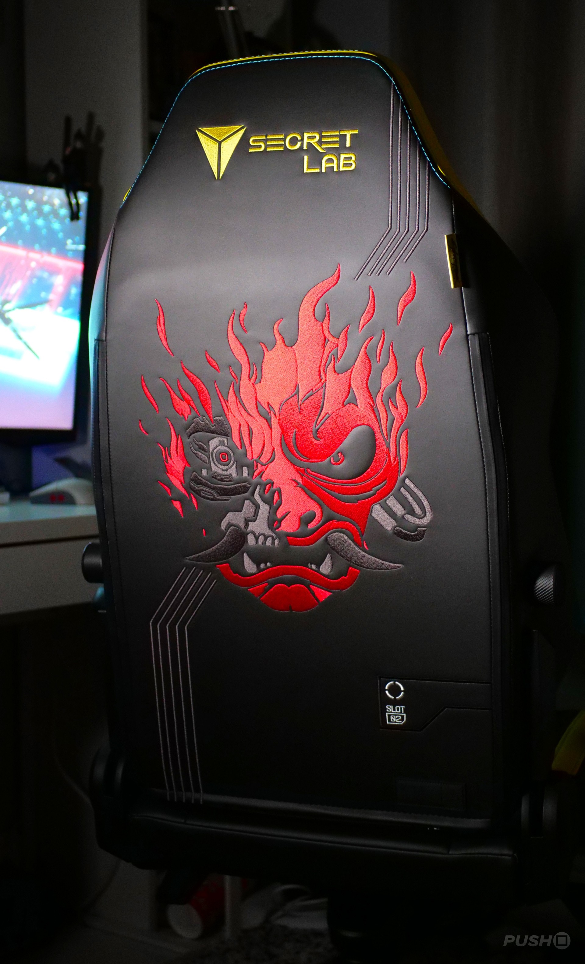 The "slot" stitching, Cyberpunk tag, and "neural connection" patch are welcome small details, and as a huge Cyberpunk 2077 fan, I'm more than happy with how this chair looks.
