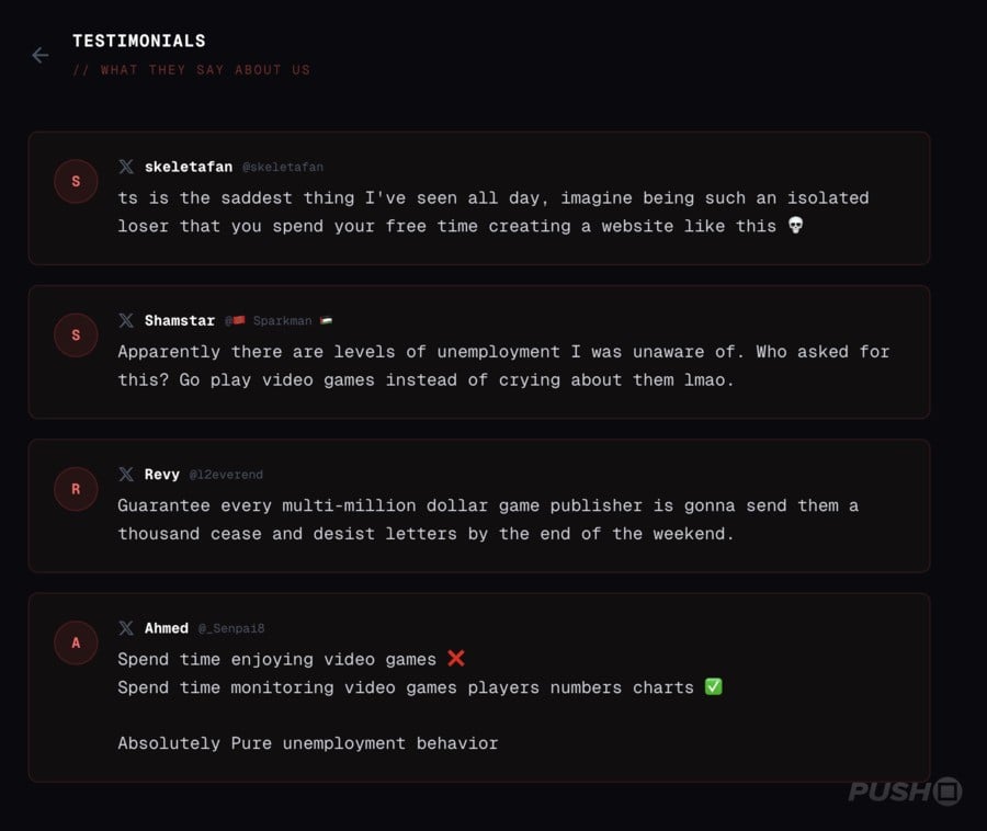 Essentially, the site is presenting the same data as SteamDB, but in a needlessly antagonistic way that seems to be cheering on the failure of video games.
