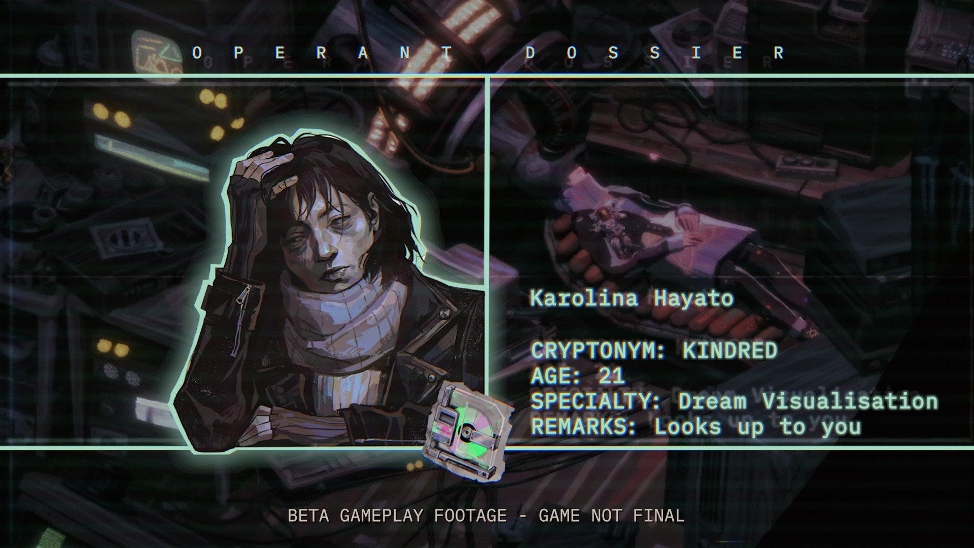 The youngest member of the old crew, as much a younger sibling as an asset. You taught K everything she knows about the shadow arts, from infiltration, to handling interrogations and beyond. When you last saw her, she was undercover inside a highly experimental Dream Study. For all you know, she might still be there.