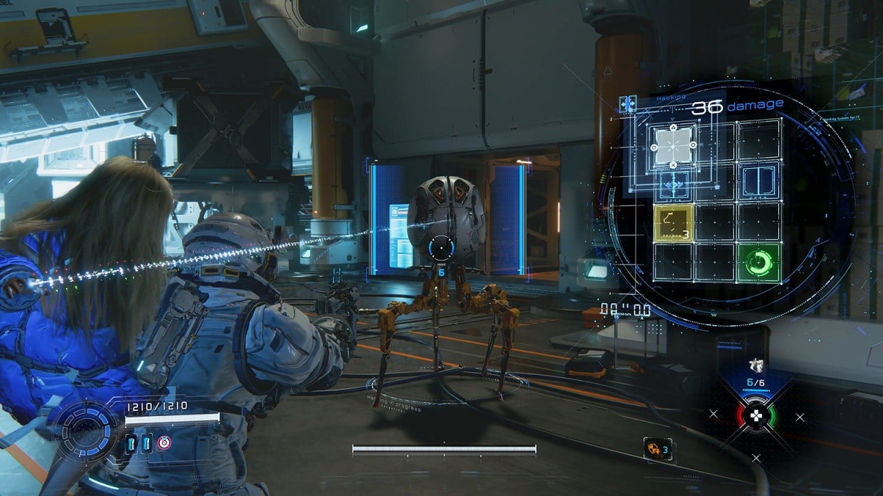 I’m sure you’re familiar with the third-person gameplay loop by now, but just in case: each time you target an enemy with the L2 trigger, a hacking panel will appear controlled by Diana.