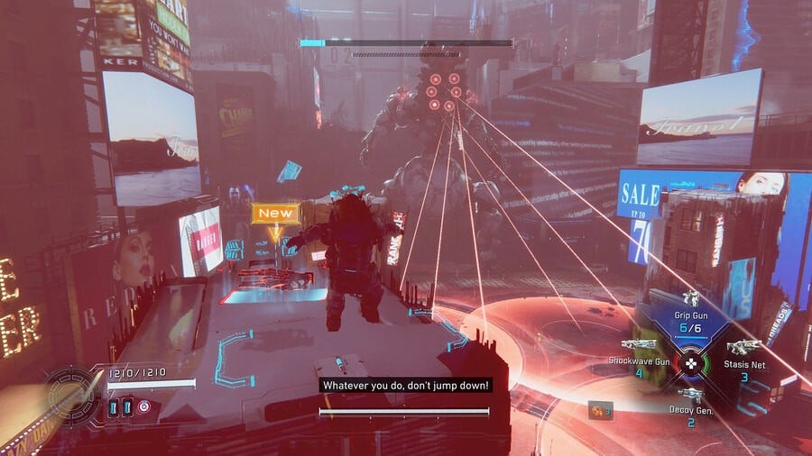 Nothing prepared me for the final boss fight, though, a humongous bot who filled up practically the entirety of the Times Square-style area.