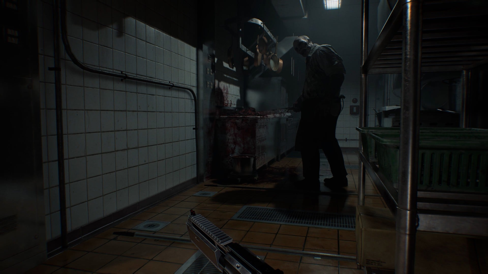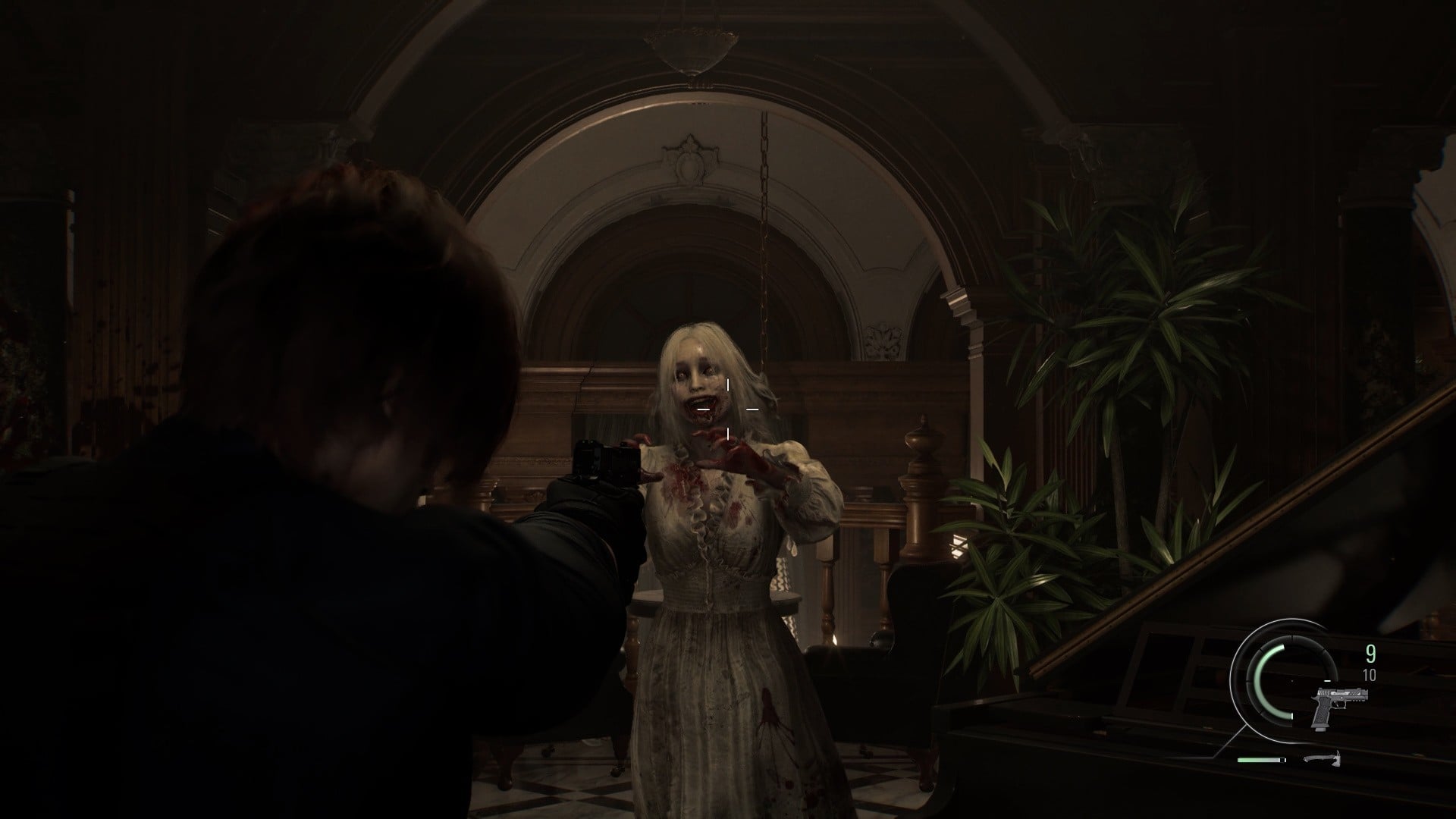 With no ammo whatsoever and a much tighter perspective, it initially feels like you're playing an entirely different game as you take control of Grace. All she can do is run away and try to survive until you reach the main hall, where you'll start to stock up on bullets and green herbs.
